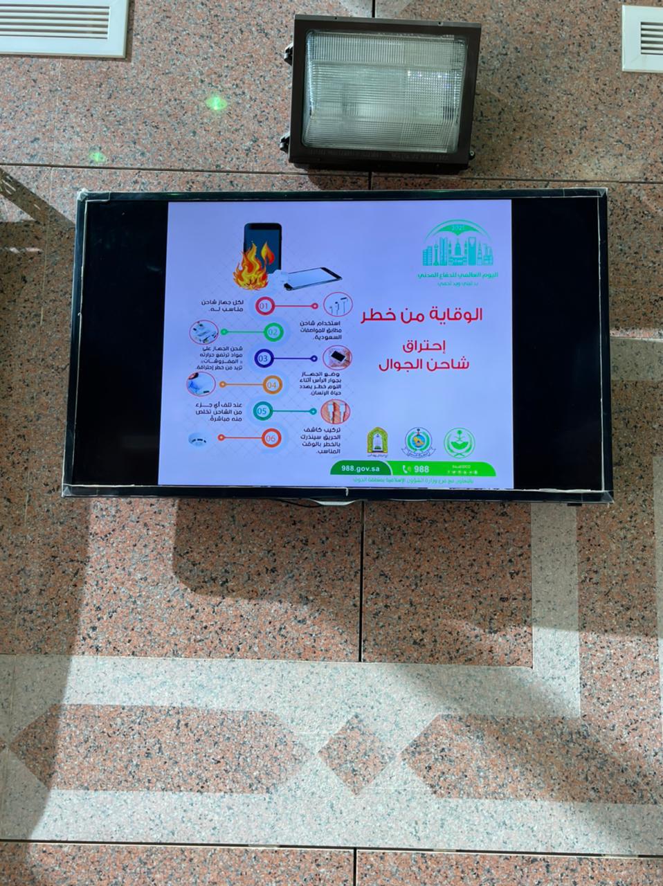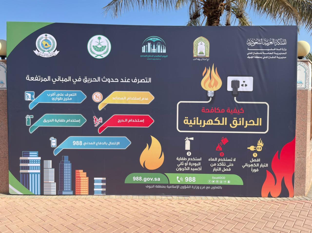 شاركت وزارة الشؤون الإسلامية والدعوة والإرشاد بفعاليات اليوم العالمي للدفاع المدني، الذي صادف اليوم الأول من شهر مارس 2021، حيث قامت الوزارة وفروعها في مناطق المملكة بالمشاركة بتوعية منسوبيها، ووضع لوحات توعوية وإرشادية عبر الشاشات الرئيسة عن أهمية التوعية بالسلامة، وأخطار الحرائق ونحوها، وبيان وسائل السلامة، إلى جانب التنويه بالجهود التي يقدمها رجال الدفاع المدني.