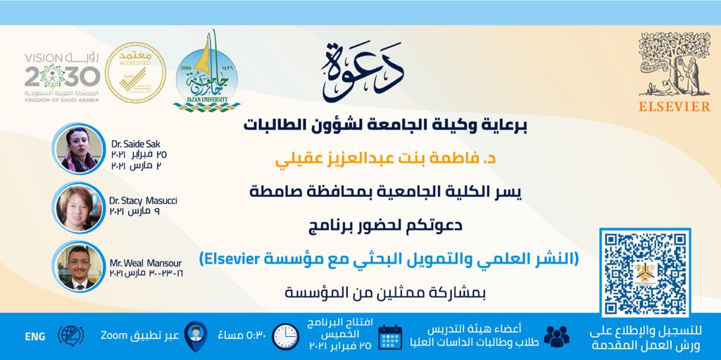الكلية الجامعية بمحافظة صامطة تطلق فعاليات برنامج”النشر العلمي والتمويل البحثي مع مؤسسة ElSEVIER”