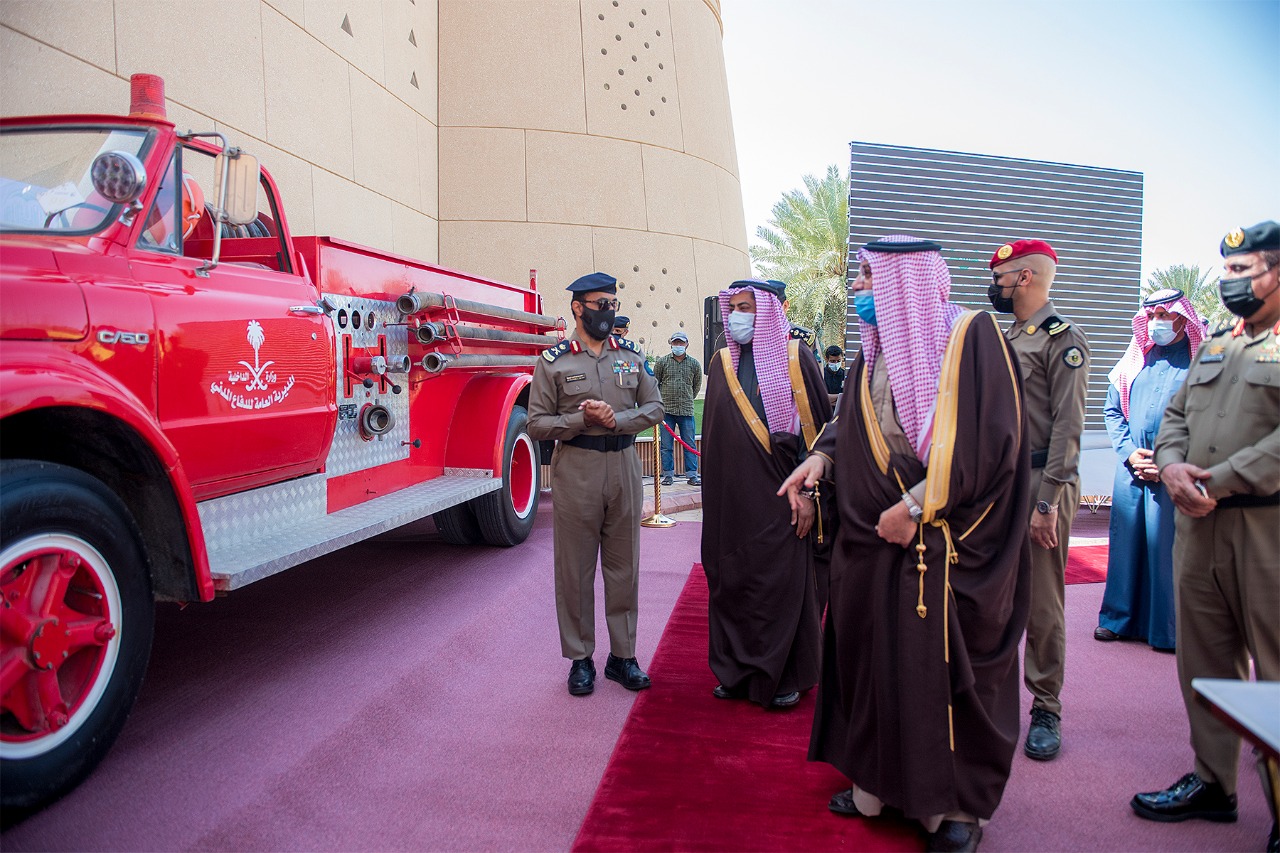 عقب ذلك وقف سمو أمير القصيم على مدى جاهزية منسوبي الدفاع المدني بالمنطقة عبر الآليات الحديثة والتقنية المتقدمة لمباشرة الكوارث والأزمات – لا قدر الله -، مطلعاً أيضاً على المحتوى التوعوي الذي سيتم نشره بين جميع شرائح المجتمع بهذه المناسبة.