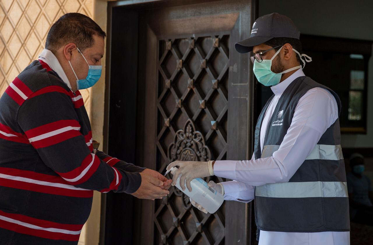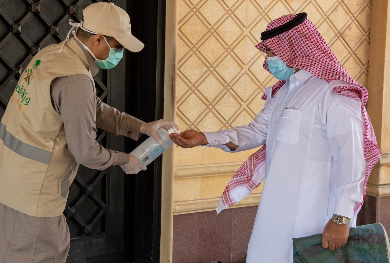 وبدأت الحملة اليوم الجمعة بمشاركة عدد من المتطوعين الصحيين ومراقبي المساجد في عدد من جوامع مدينة الرياض، حيث قام المشاركون فيهل بتوجيه وإرشاد المصلين بالالتزام بالتباعد الجسدي ، واستخدام السجادة الخاصة ، ومداومة ارتداء الكمامة، وتنظيم دخول وخروج المصلين من الجوامع، إلى جانب توزيع الكمامات والسجادات على المصلين .