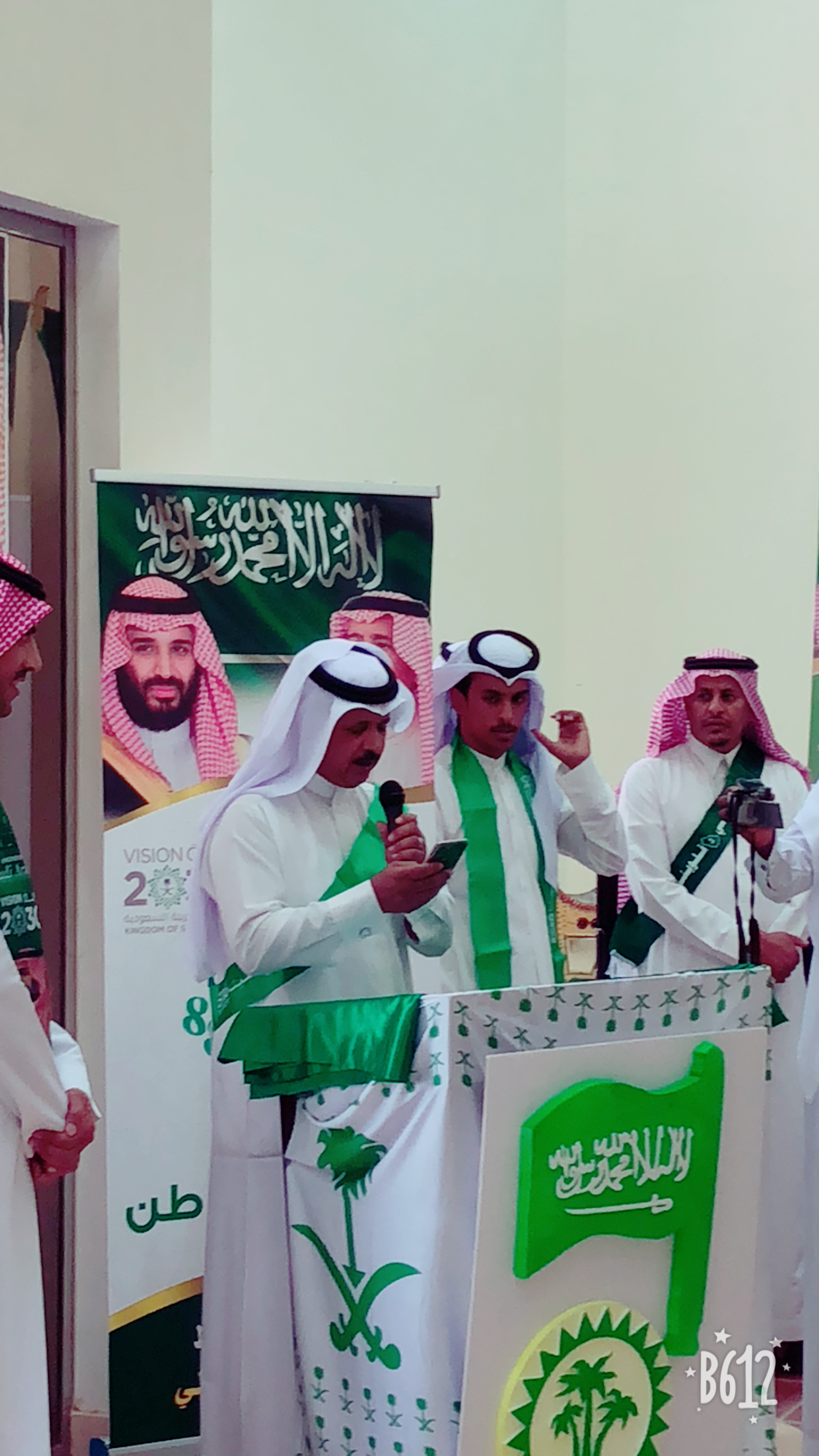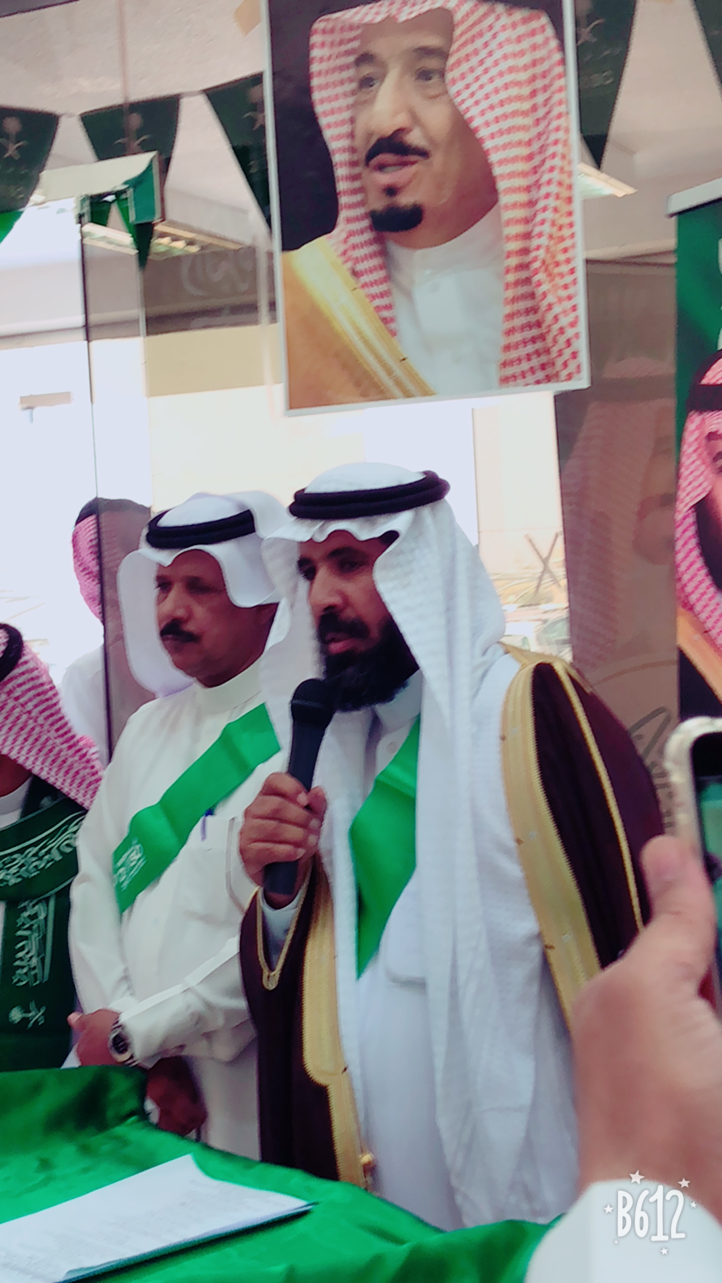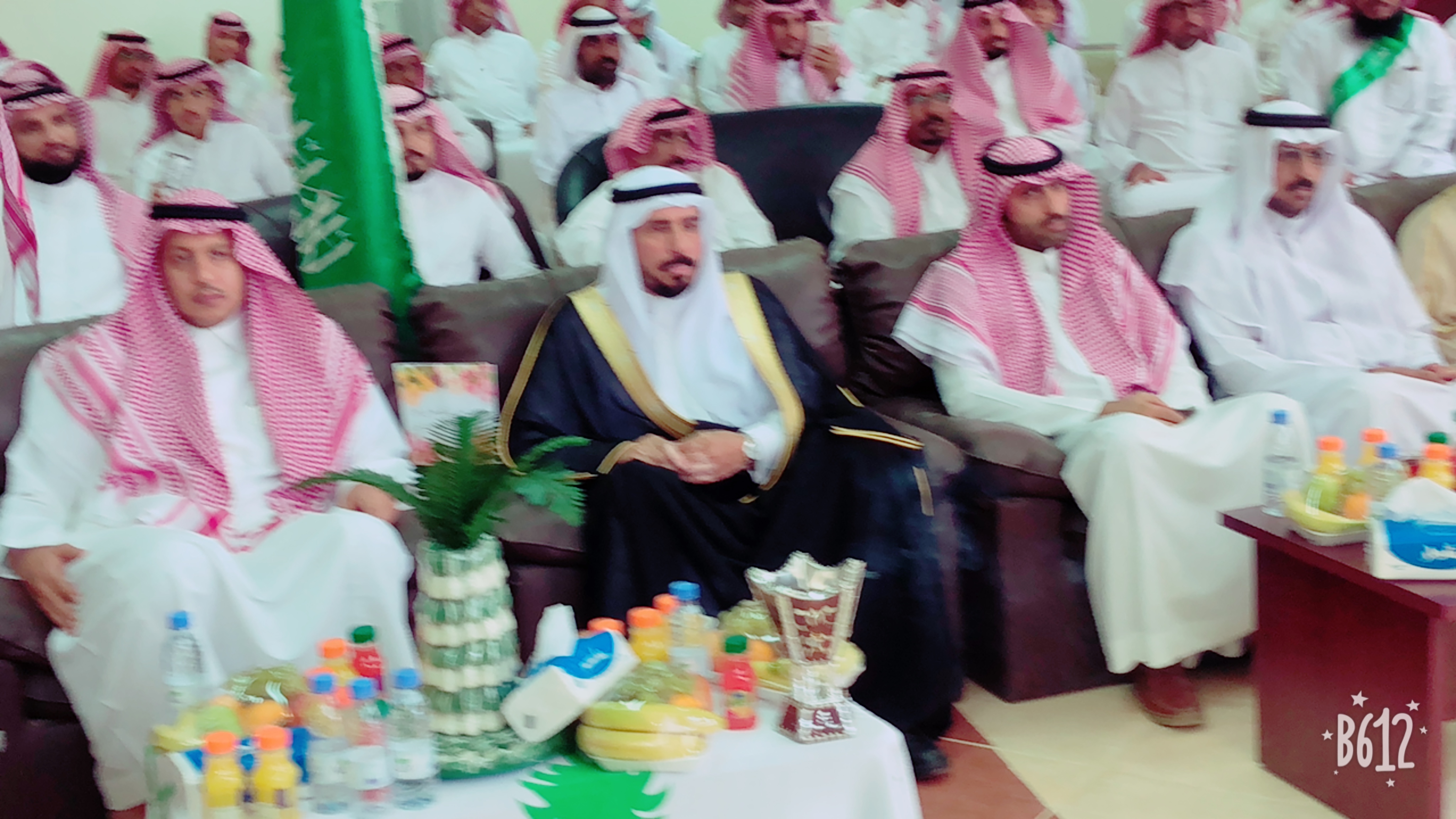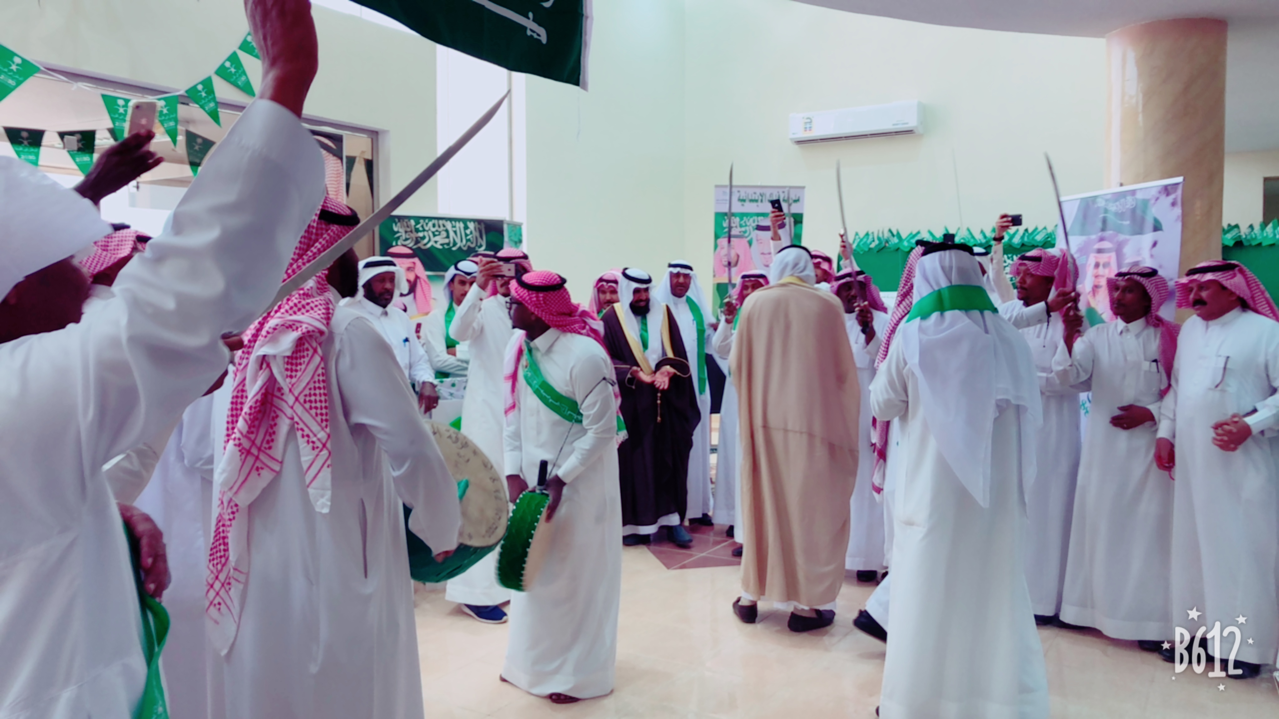 الإدارات الحكومية والأمنية ورؤساء المراكز ومشائخ القبائل ومنسوبي التعليم .وقد أُقامت ادارة التعليم بالمحافظة الحفل على مسرح الإدارة.وكانت تلاوة من القرآن الكريم بصوت الاستاذ باسل عايد الكريم خير بداية، ثم توالت الفقرات بتقديم الاستاذ فيصل مسند العويمري الذي قدم فقرات الحفل؛من إلقاء عدد من القصائد الشعرية التي تغنت بحب الوطن والانتماء له والدعوة للمحافظة على منجزاته ومكتسباته.وأوضح مدير التعليم بالمحافظةالأستاذ شليويح علي الرشيدي خلال كلمة ألقاها بهذه المناسب: “إن من واجبنا جميعا أن نتعاون في سبيل المحافظة على ما حققته هذه البلاد من مكتسبات في شتى المجالات، وأن نسعى حثيثا في بناء الوطن ورقيه وتطويره، وأن نعمل سوية على نشر الوسيطة والاعتدال بين الناس، وتحذيرهم من مغبة الغلو في دين الله، وخطورة التطرف والأفكار المنحرفة على الفرد والمجتمع، وأن يقوم كل فرد منا برسالته ومن موقع مسؤوليته ، وأن يكون كل فرد منا رجل أمن يحرس الوطن ويقدم نفسه رخيصة في سبيل الله، دفاعاً عن حياضه، وذودا عن كرامته ومقدساته، مشيرا إلى أهمية العمل تجاه وطننا وفق رؤية 2030.”ثم القيت قصيدة نبطية القاها الشاعر مساعد نور الرويضي تلاها عرض مرئي لفعاليات الميدان التربوي عن مدارس التعليم التابعة للمحافظة. ثم القيت كلمة انشوده عن الوطن القاها طلاب مدرسة فدك، ثم قدمت العرضة السعودية، ثم إنشاد بعنوان ” عشقي السعودية ” القاها الطالب سليمان سالم الرشيدي، وتبعها مشاعر وطنية القاها الطالب ضافي عبدالله صالح، وحرص المحافظ على تكريم الأعلاميين المشاركين بدروع تذكارية وذلك نظير جهودهم لحفل التعليم بمناسبة اليوم الوطني . وفي ختام الحفل قدم مجموعة من الطلاب أوبريت إنشادي بعنوان ” المجد والعلياء ” والذي اشتمل على مجموعة من اللوحات الوطنية التي هتفت بحب الوطن .وصاحب هذا الازدحام والابداع ايضا تدشين المعرض المصاحب للاحتفالية الذي اشتمل على صور ورسومات، ولوحات فنية تصف مراحل التنمية والازدهار في شتى المجالات منذ عهد المؤسس الملك عبدالعزيز بن عبدالرحمن آل سعود – رحمة الله- حتى عهد خادم الحرمين الشريفين الملك سلمان بن عبدالعزيز آل سعود ـ حفظه الله -.