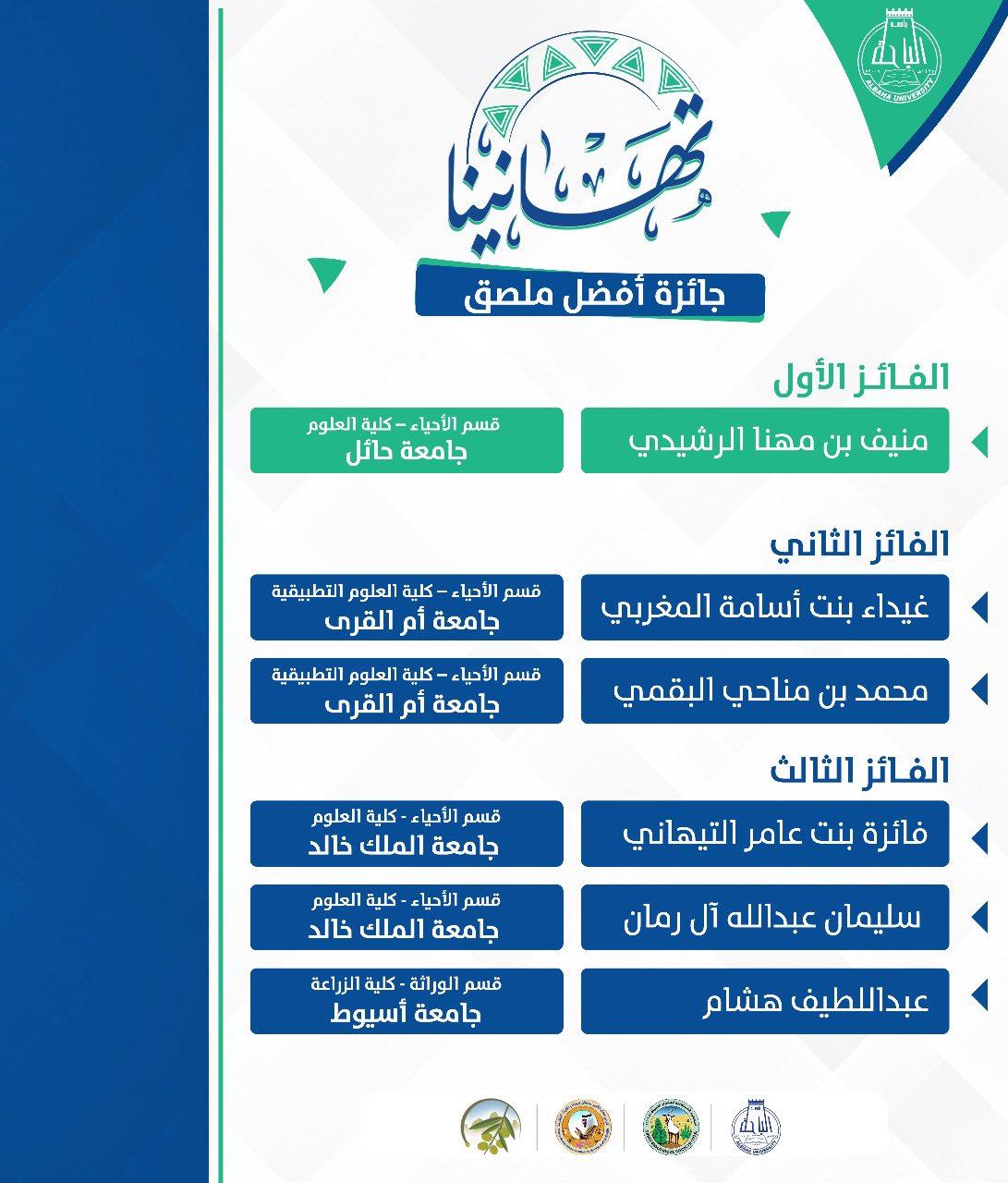 حصل الدكتور منيف بن مهنا الرشيدي، أستاذ البيئة وحماية الحياة الفطرية المشارك بقسم الأحياء بجامعة حائل، على المركز الأول بوصفه صاحب أفضل ملصق علمي عن الورقة العلمية بعنوان: “التأثير المحتمل للتغير المناخي في بيولوجية التكاثر للطيور البحرية على الساحل الشرقي للمملكة”، وذلك في لقاء “التنمية المستدامة في منطقة الباحة” الذي نظمته جامعة الباحة، بالتعاون مع الجمعية السعودية لعلوم الحياة وكرسي الأمير سلطان لأبحاث البيئة والحياة الفطرية، وبمشاركة من كرسي الشيخ سعيد العنقري لأبحاث الزيتون بالجامعة.