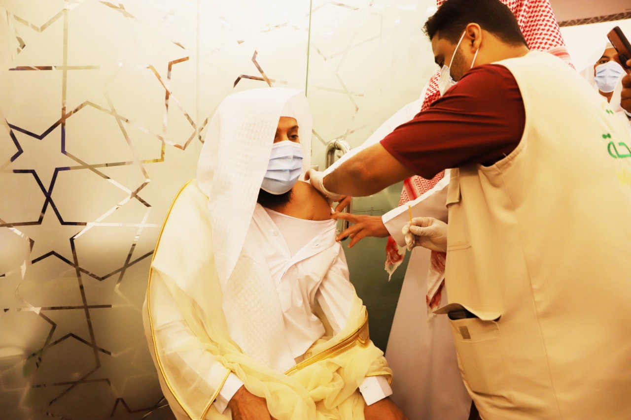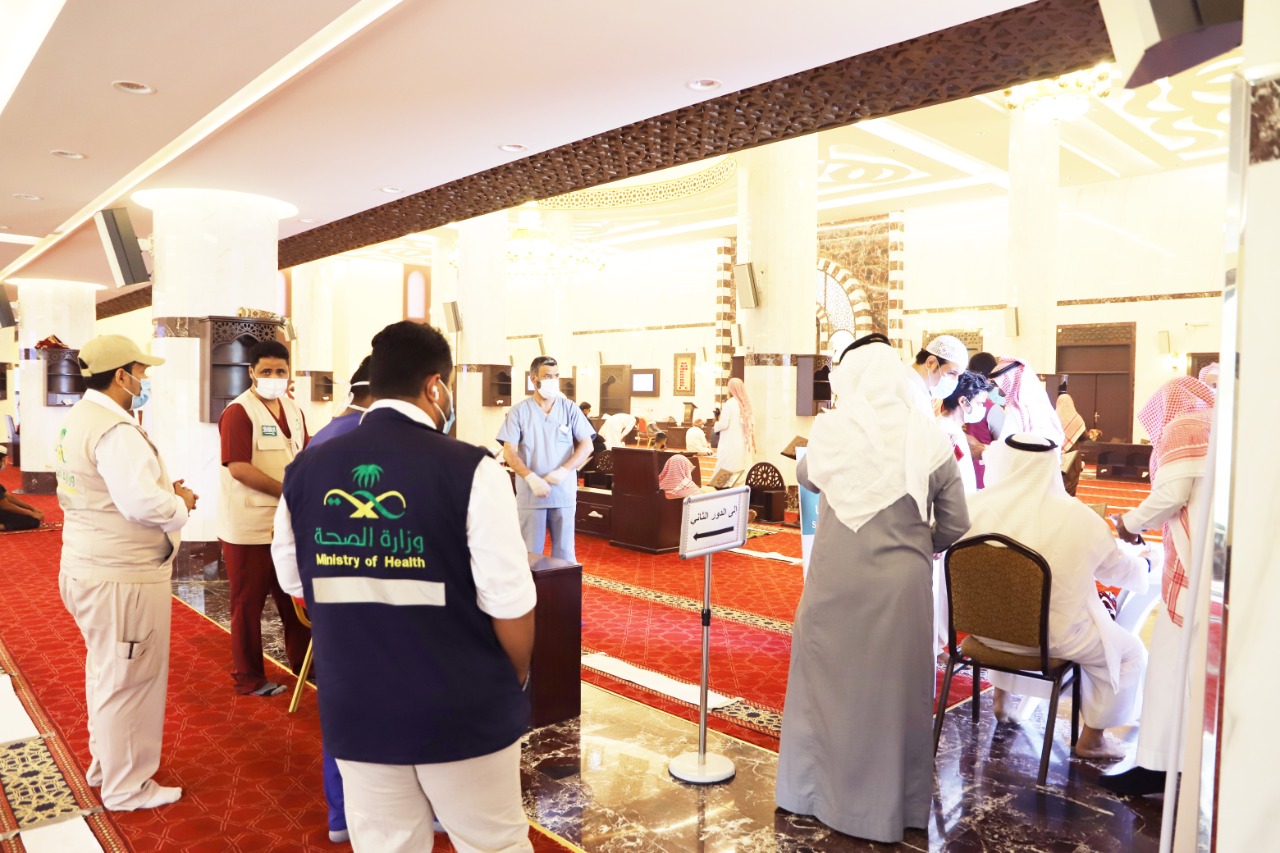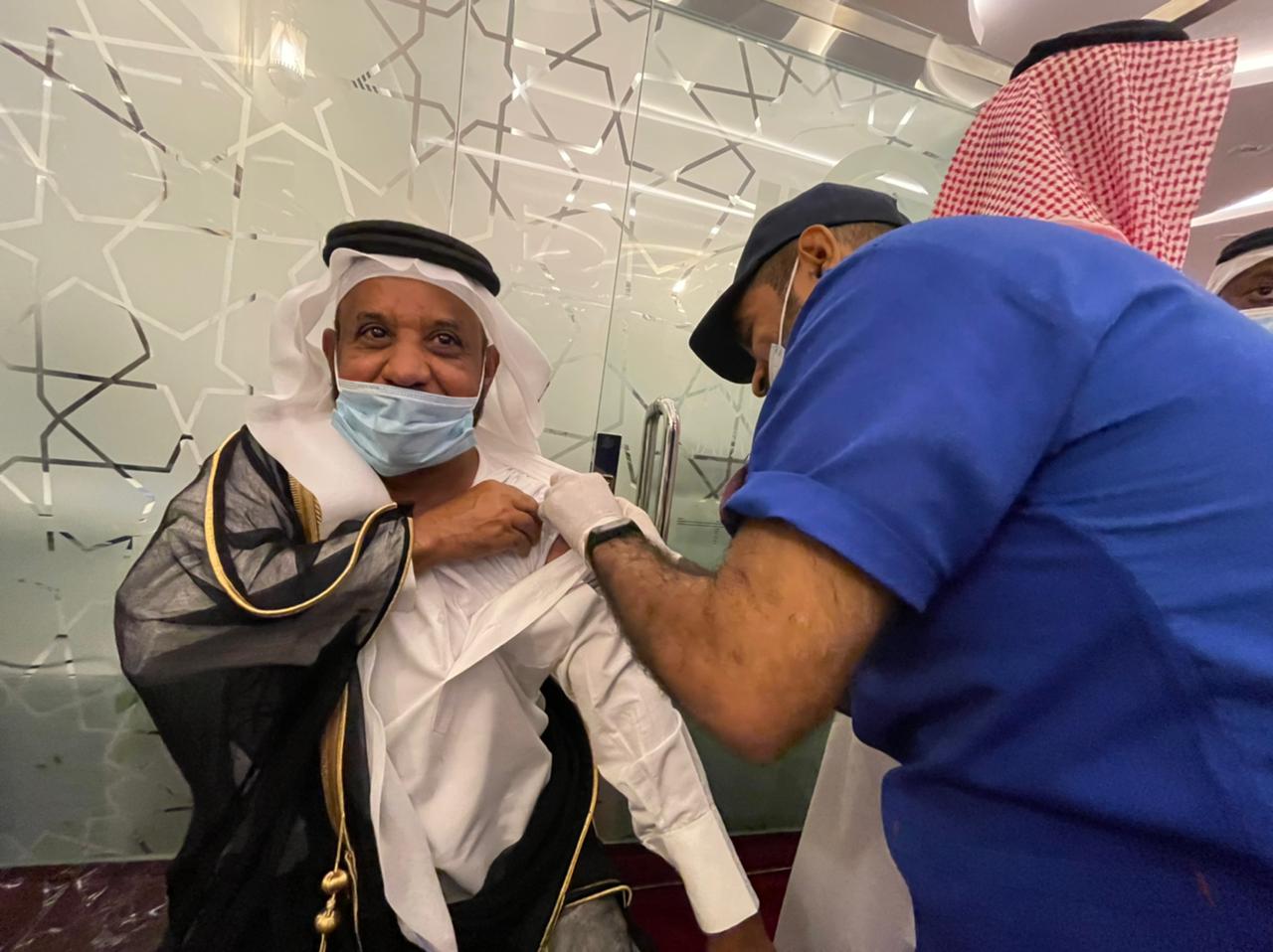 وقدم د مهارش في ختام خطبته الشكر لقيادة المملكة على جهودها الجبارة في مكافحة وباء كورونا؛ منوها بما قدم للمواطنين والمقيمين من خدمات كبيرة ومتواصلة لحمايتهم وعلاجهم مجانًا، وتجييش العاملين لحراسة صحة الناس، والحفاظ على وقايتهم من العدوى، وتوفير سبل بقاء العيش، وتسهيل استعمال الوسائل الحديثة لاستمرار عجلة الحياة . وحث الخطيب الناس على أخذ اللقاح قبل مغادرة الجامع وقام د مهارش وبعض الأعيان يتقدمهم الشيخ قاسم الحاظري بعد الصلاة مباشرة بأخذ اللقاح وتوافد الناس بعد ذلك في انتظام تام بأخذ اللقاح وتحاوز عدد المستفيدين من هذه المبادرة الوطنية أكثر من ٢٥٠ شخصا ولله الحمد والمنة.