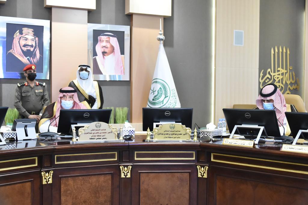 رأس صاحب السمو الملكي الأمير محمد بن ناصر بن عبدالعزيز أمير منطقة جازان رئيس مجلس المنطقة ، اليوم ، الجلسة الافتتاحية لجلسات مجلس المنطقة في دورته الأولى للعام المالي 1442 – 1443 هـ ، وذلك بقاعة الاجتماعات الرئيسية بالإمارة.