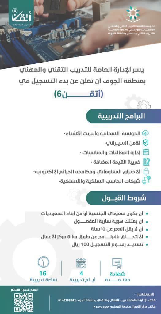 التدريب التقني بالجوف يعلن البدء بالبرامج التدريبية  “أتقن”