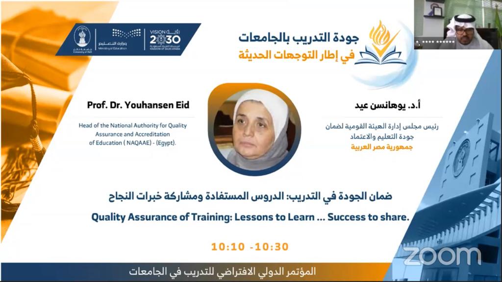دشّن معالي رئيس جامعة حائل، الأستاذ الدكتور خليل بن إبراهيم البراهيم، هذا اليوم انطلاق فعاليات اليوم الأول للمؤتمر الدولي الافتراضي الذي يقام تحت عنوان (جودة التدريب في الجامعات في إطار التوجهات الحديثة). الذي تنظمه جامعة حائل، ممثلة في عمادة الجودة والتطوير، ويستمر على مدى يومين بمشاركة نخبة من المتحدثين الدوليين.