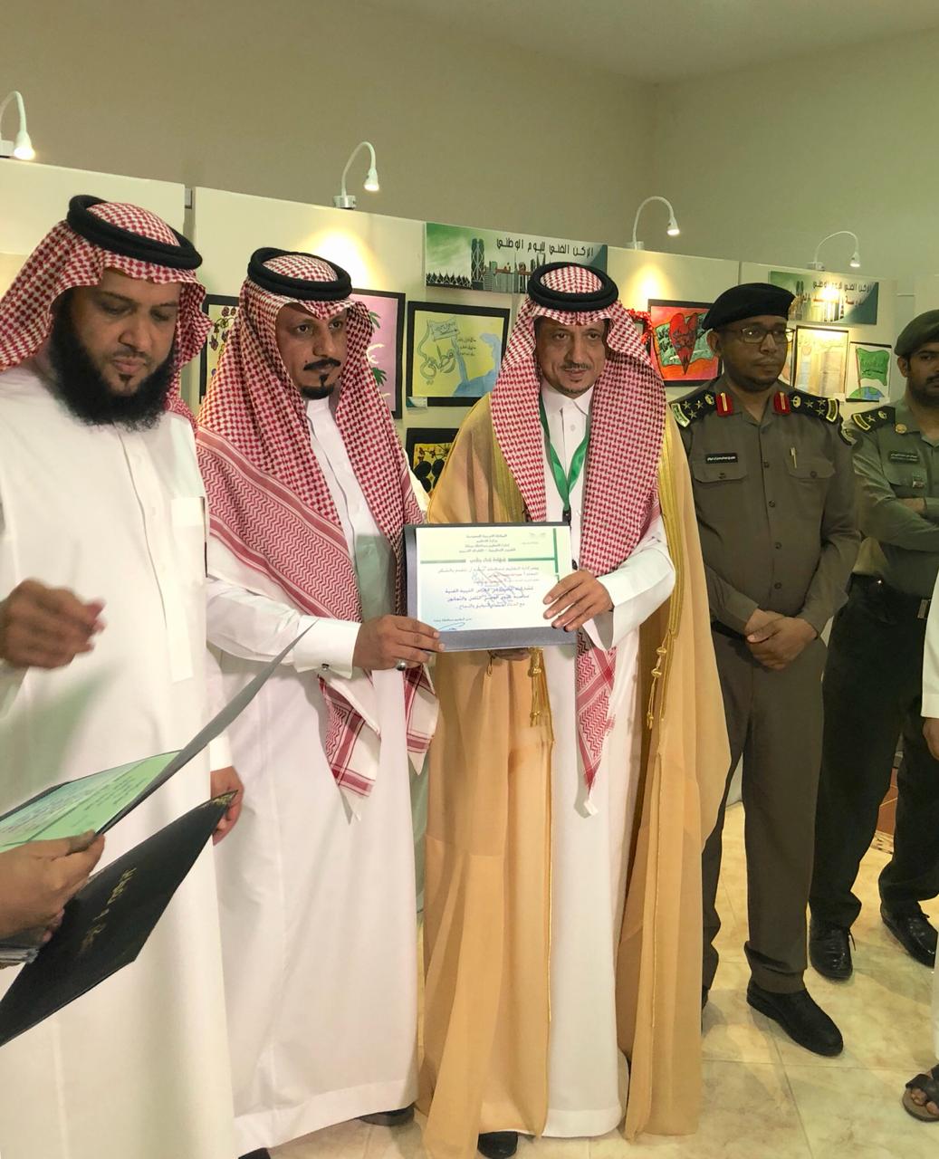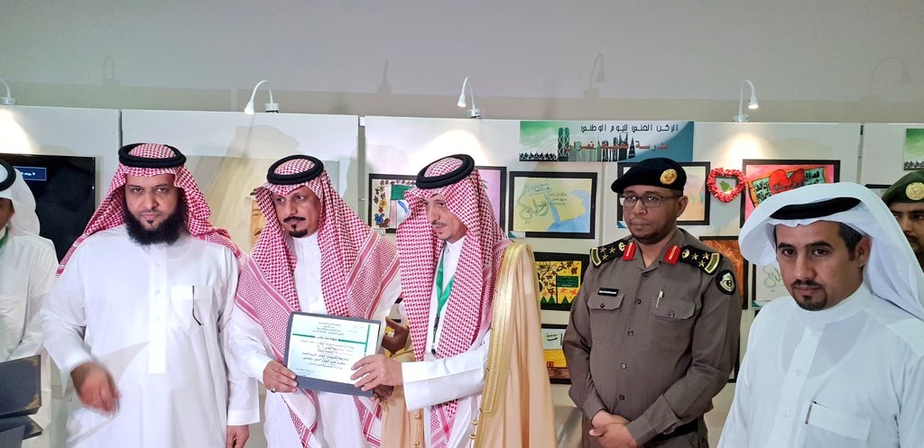 كرّم محافظ بيشة، الأستاذ محمد بن سعيد آل سبره، الأستاذ عبداللة بن محمد الطلوق المنبهي الشهراني، وذلك في معرض التربية الفنية بمركز الأمير منصور بن مقرن الثقافي، إثر مشاركة مدرسة فلسطين الابتدائية والمتوسطة وبرامج التربية الخاصة بحفل اليوم الوطني الـ 88 المقام تحت رعاية محافظ بيشة.