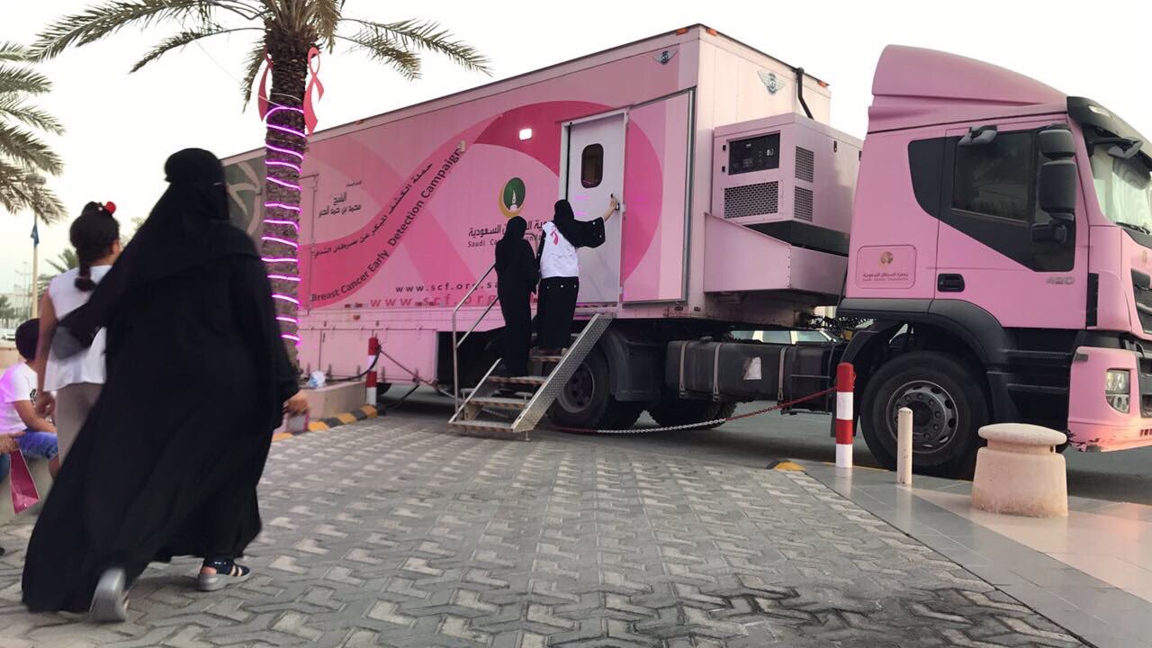 وتنطلق الحملة هذا العام لتجول مختلف مدن ومحافظات المنطقة الشرقية بالتزامن مع شهر أكتوبر الشهر العالمي للتوعية عن سرطان الثدي من خلال إقامة فعاليات متنوعة تتضمن أنشطة توعوية للأفراد بالمجمعات التجارية والمنشأت الحكومية والخاصة ومحاضرات تثقيفية للكوادر الطبية، إضافة إلى وجود 3 عيادات متنقلة “سيارات ماموجرام” بهدف فحص أكبر عدد من النساء واكتشاف الورم مبكرا .