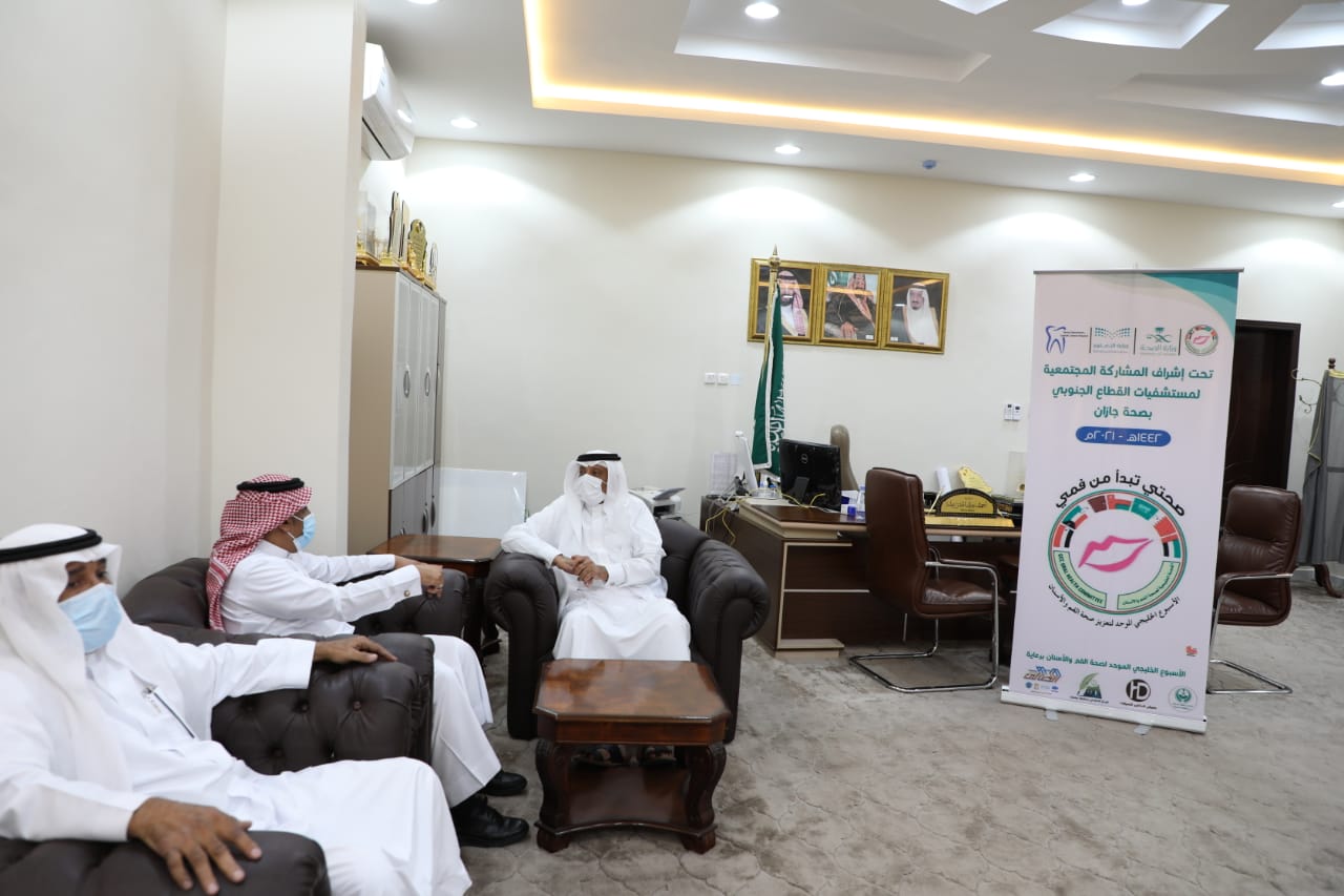 دشن محافظ صامطة الأستاذ أحمد بن عبد الله زعلة، صباح اليوم، في مكتبه، فعاليات الأسبوع الخليجي الموحد لتعزيز صحة الفم والأسنان 2021م، تحت شعار “صحتي تبدأ من فمي”.
