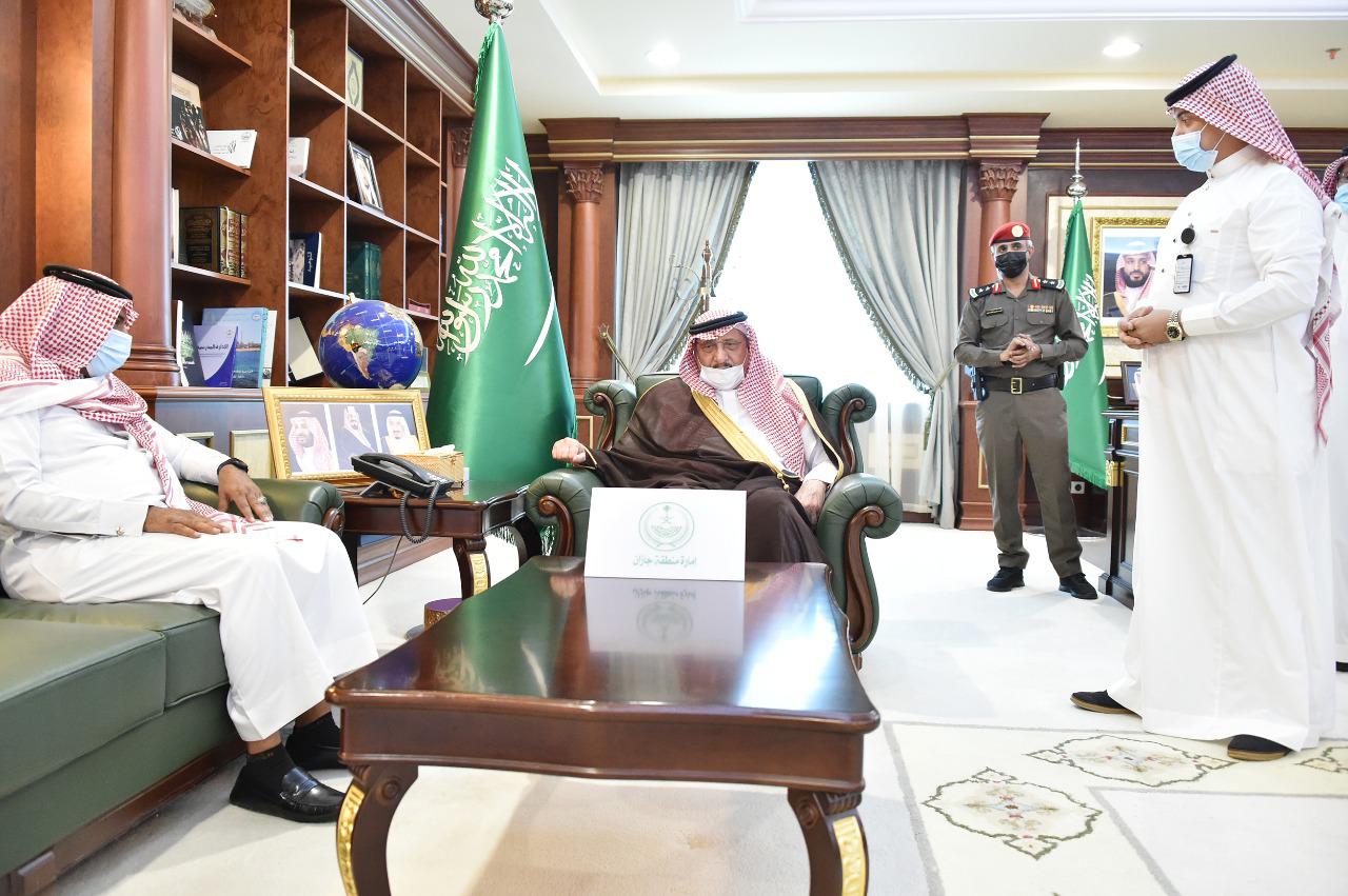دشّن صاحب السمو الملكي الأمير محمد بن ناصر بن عبدالعزيز أمير منطقة جازان، اليوم بمكتبه بالإمارة ، الحملة الإلكترونية لمساعدة أسر السجناء، التي تنظمها اللجنة الوطنية لرعاية السجناء والمفرج عنهم وأسرهم بجازان «تراحم»، تحت شعار ” نتراحم معهم”.
