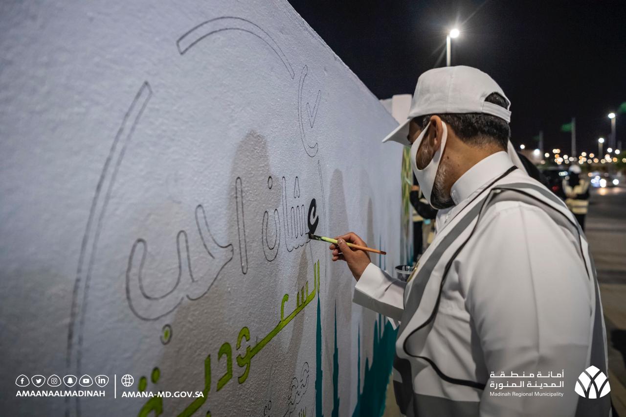 وشارك معالي الأمين مع فريق أشبال الأمانة التطوعي المكون من 50 طفل وطفلة في تلوين الشعارات، إلى جانب مشاركته في الجدارية التي رسمت بأنامل مجموعة من طالبات كلية التربية الفنية تحت إشراف عدد من المبدعين.