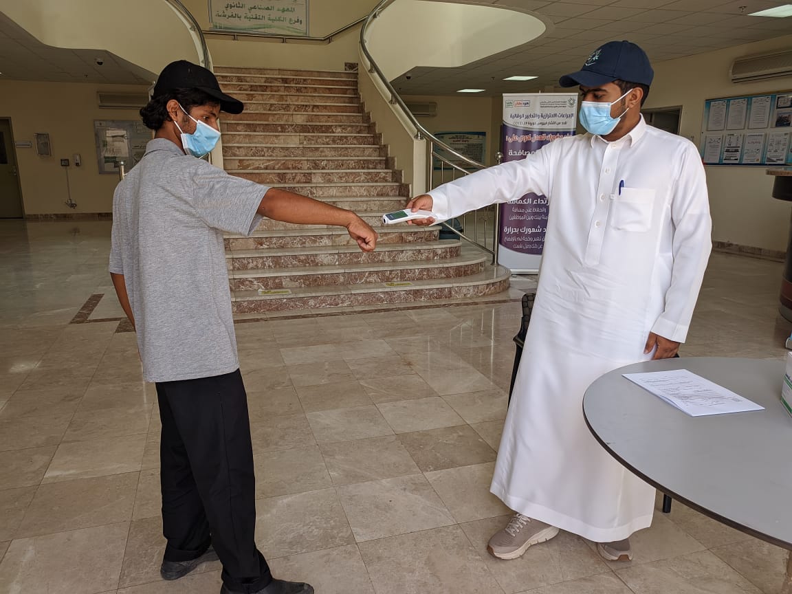 حيث أوضح مدير المعهد ومشرف فرع الكلية المهندس عبدالله آل معدي أن الوحده اتخذت الإجراءات الاحترازية ووفرت التجهيزات من معقمات وكمامات وأجهزة قياس لضمان سير الاختبارات بما يضمن سلامة وصحة المتدربين داخل الوحده منوها بما بذله الطاقم من المدربين والإداري الفني والأمني من تعاون وتكاتف وتفان وحرص أثمر نجاحاً متواصلاً في سير عملية الاختبارات