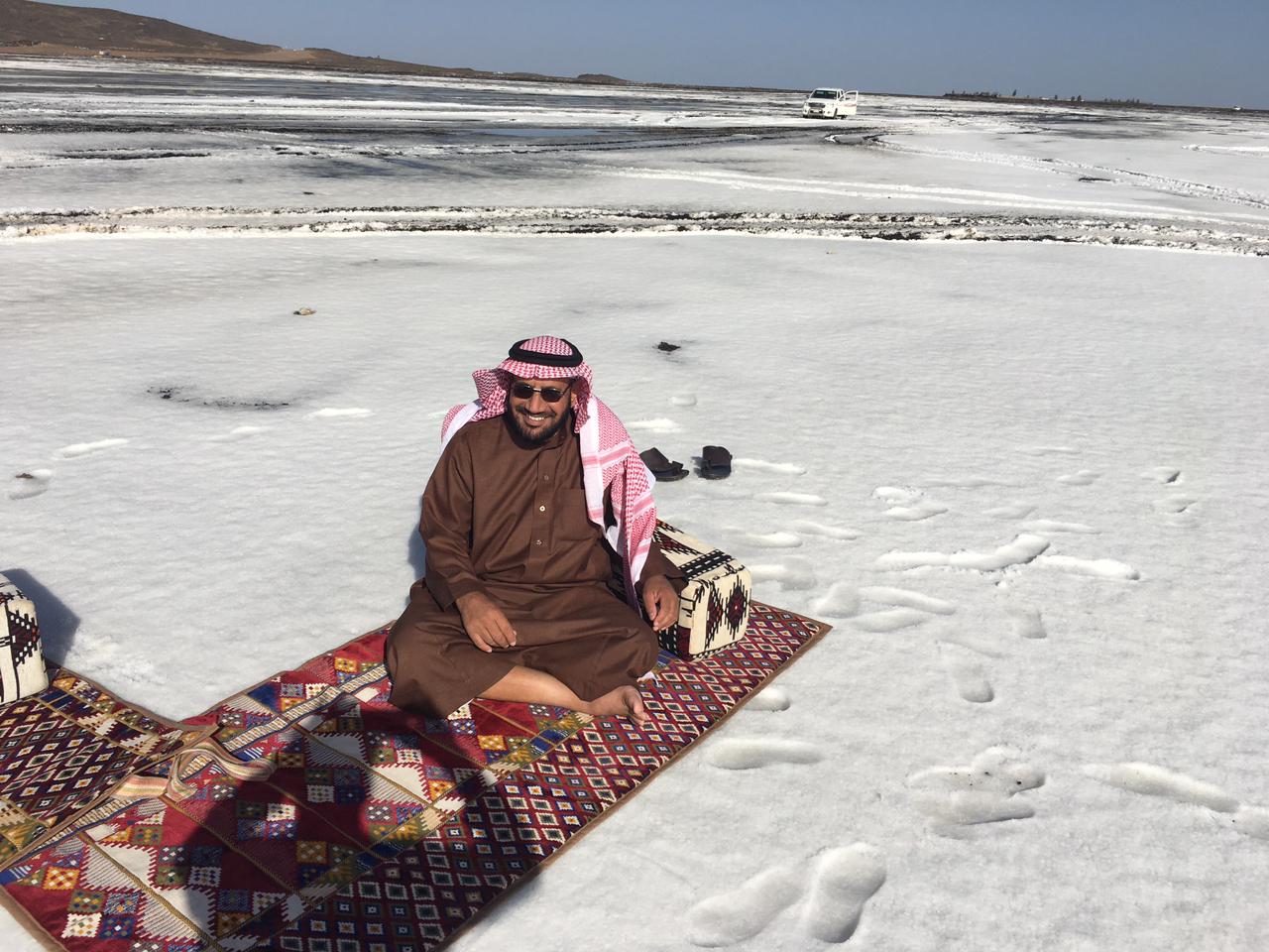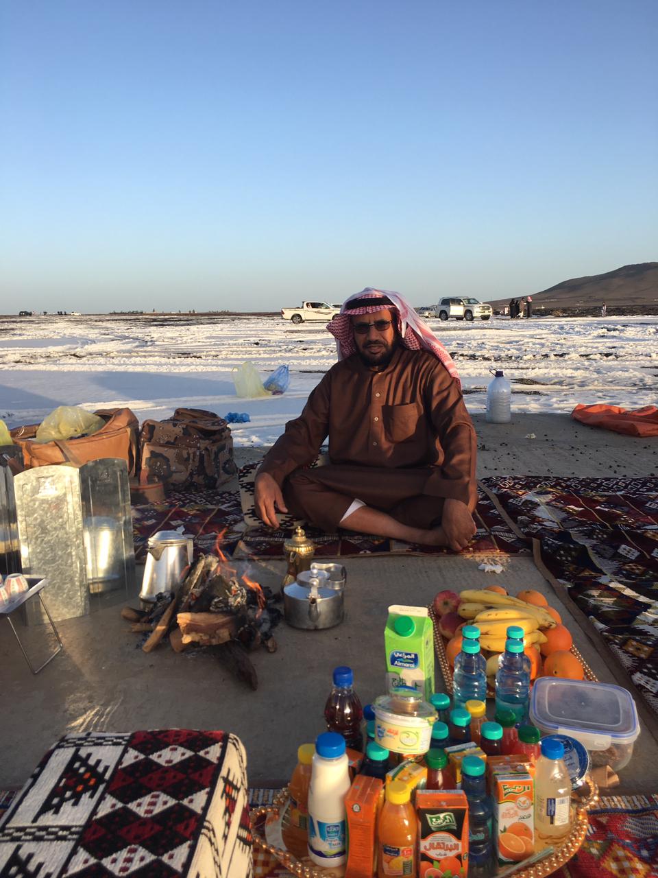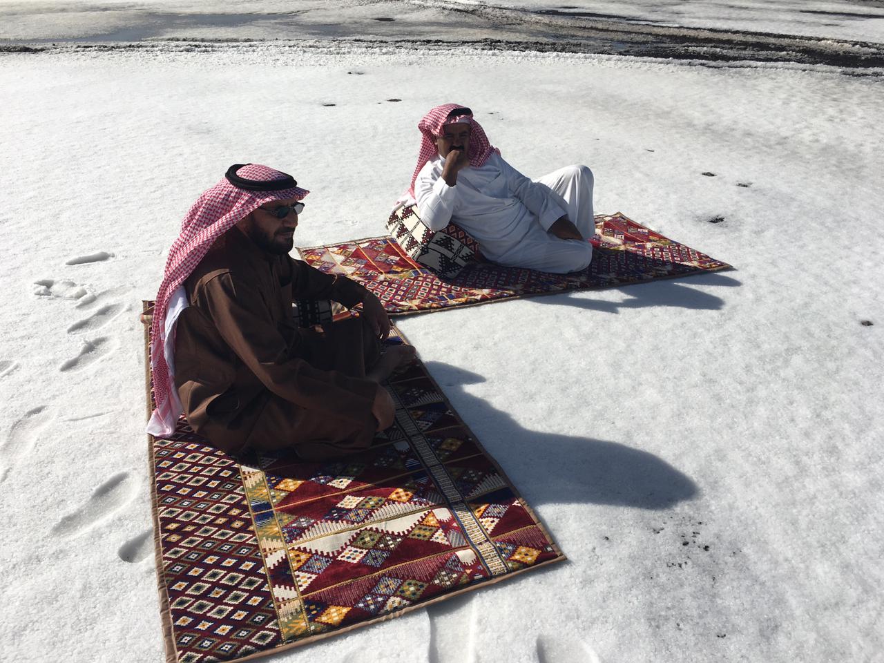 وقد اختار الأستاذ عبيد الحربي موقع مميز للتنزه وهو الجبل الابيض ، وقد التقى به الأستاذ نافع عيد الشويلعي في لقاء مميز حيث سأله عن موقعه ، فأجاب في حديثه: كما ترون قد نزل البرد يوم امس بتاريخ 6/9/1442 وقد تغطت الأرض لشدته وشدة بياضه مماجعل الجميع يتسابقون للنظر إلى هذا الجمال الرباني البديع وقد يستمر نزول البَردَ إلى اربعة وعشرين ساعة .