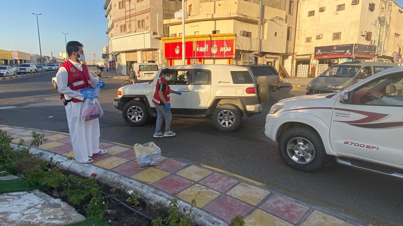 قام فريق التطوع التابع لفرع هيئة الهلال الأحمر بمنطقة الجوف بتوزيع وجبات إفطار الصائمين على مرتادي الطرق ببعض المواقع العامة في محافظة القريات.