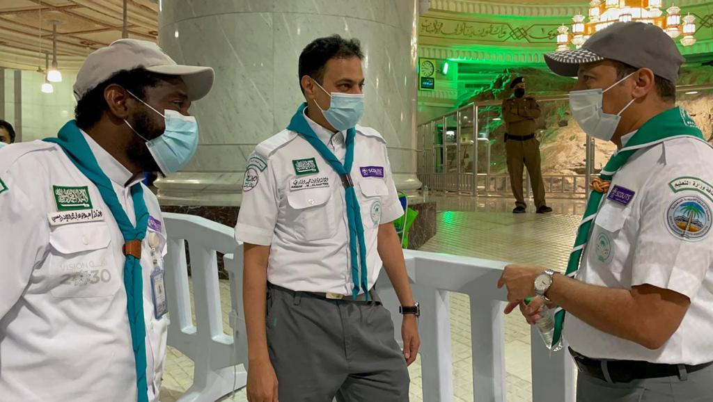 اطلع مدير إدارة النشاط الكشفي بوزارة التعليم الأستاذ مجدي الصبيحي ميدانياً على مهام وأعمال كشافة تعليم مكة المكرمة في شهر رمضان المبارك المشاركين مع الرئاسة العامة لشؤون المسجد الحرام والمسجد النبوي الشريف في تطبيق الإجراءات الاحترازية ضد فيروس كورونا .