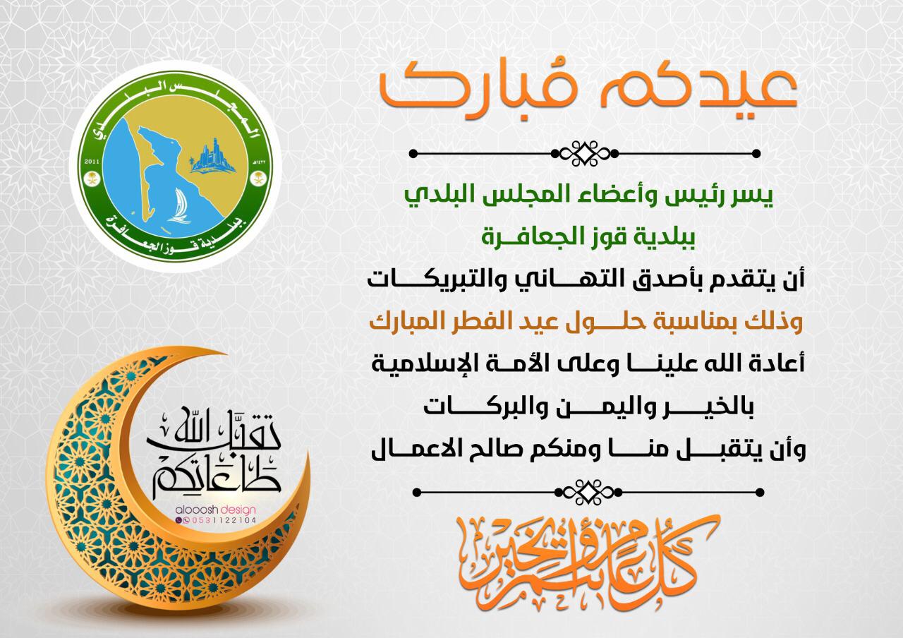 المجلس البلدي لبلديه قوز الجعافرة بنطقه جازان يهنئ القياده الرشيده بمناسبه عيدالفطر المبارك 1442هـ