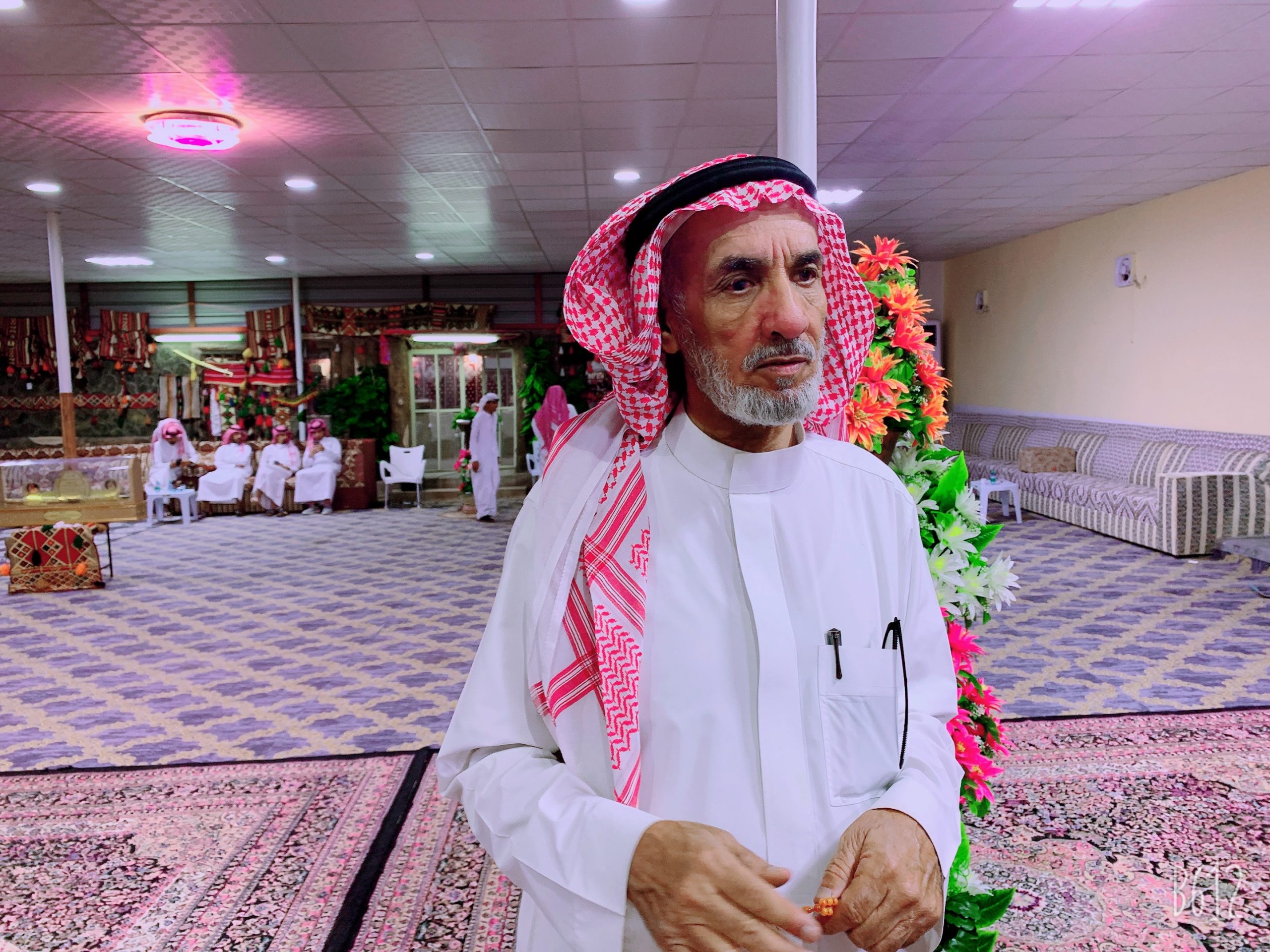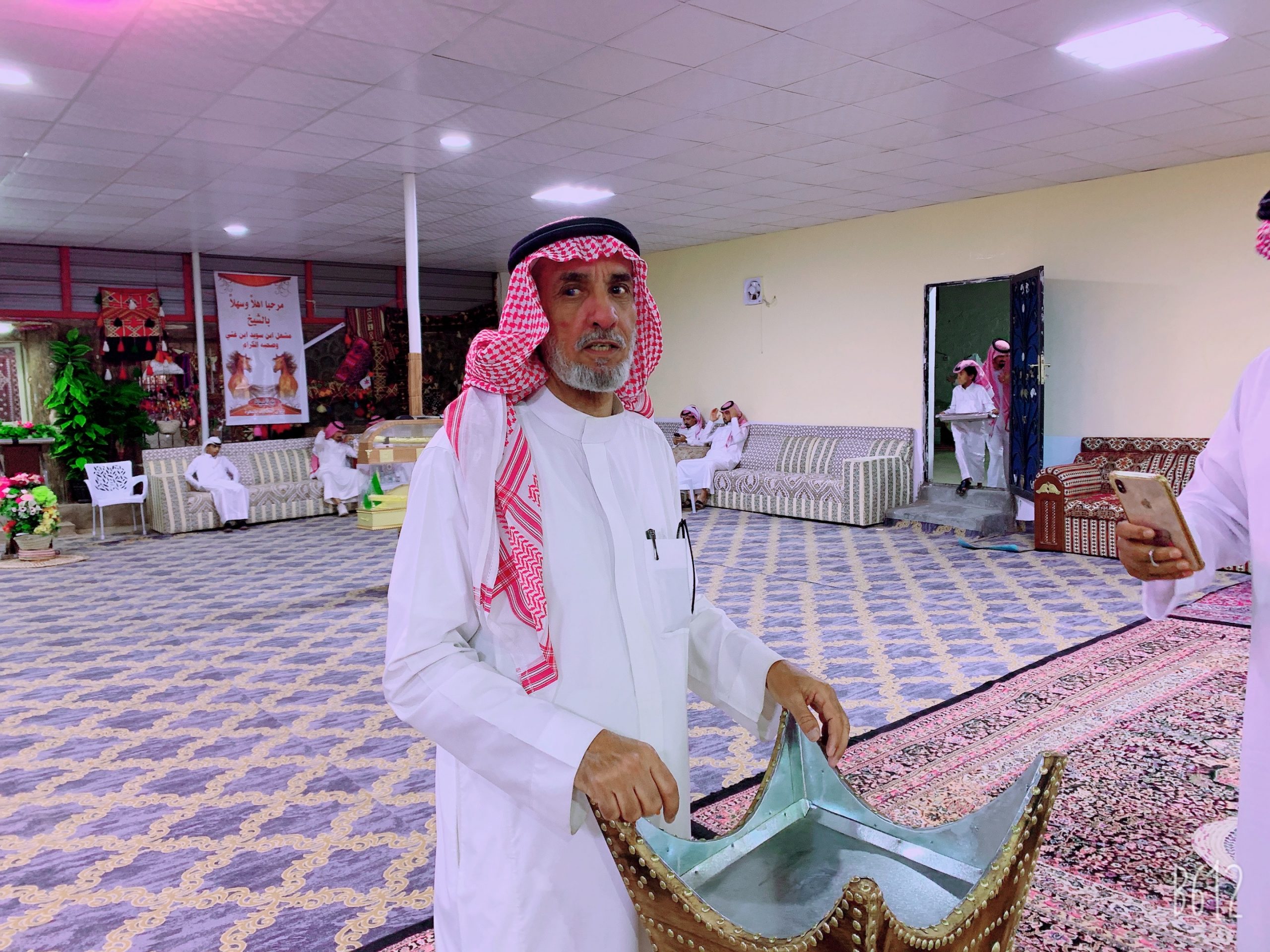 أقام الشيخ قعيد بن قعبوب معرف قرية البحرة مأدبة عشاء فاخرة على شرف معرف قرية البرقة / الشيخ مشعل بن سويد بن غثي ، بجنوب حائل .