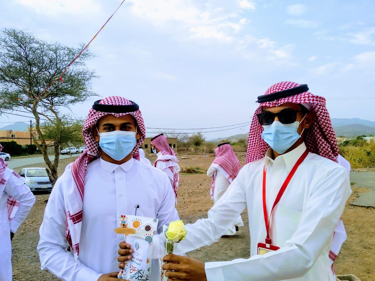 فيما قامت الفرق التطوعية من شباب وشابات المحافظة بإشراف نائب رئيس اللجنة أحمد مجرشي بتوزيع العديد من الهدايا والورود في ساحات جوامع المحافظة والمنتزهات ومداخل قرى المحافظة ومركز الخشل .