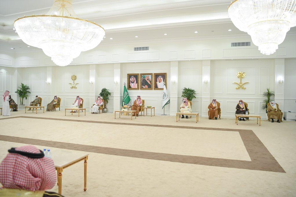 استقبل صاحب السمو الملكي الأمير فيصل بن خالد بن سلطان بن عبدالعزيز أمير منطقة الحدود الشمالية، بديوان الإمارة اليوم، مديري الإدارات الحكومية والعسكرية بالمنطقة للمعايدة بمناسبة عيد الفطر المبارك وبداية الدوام الرسمي.