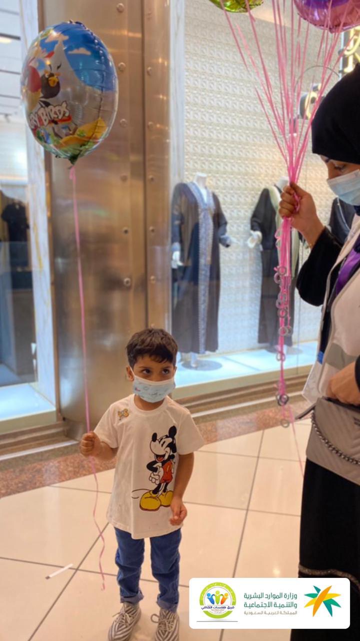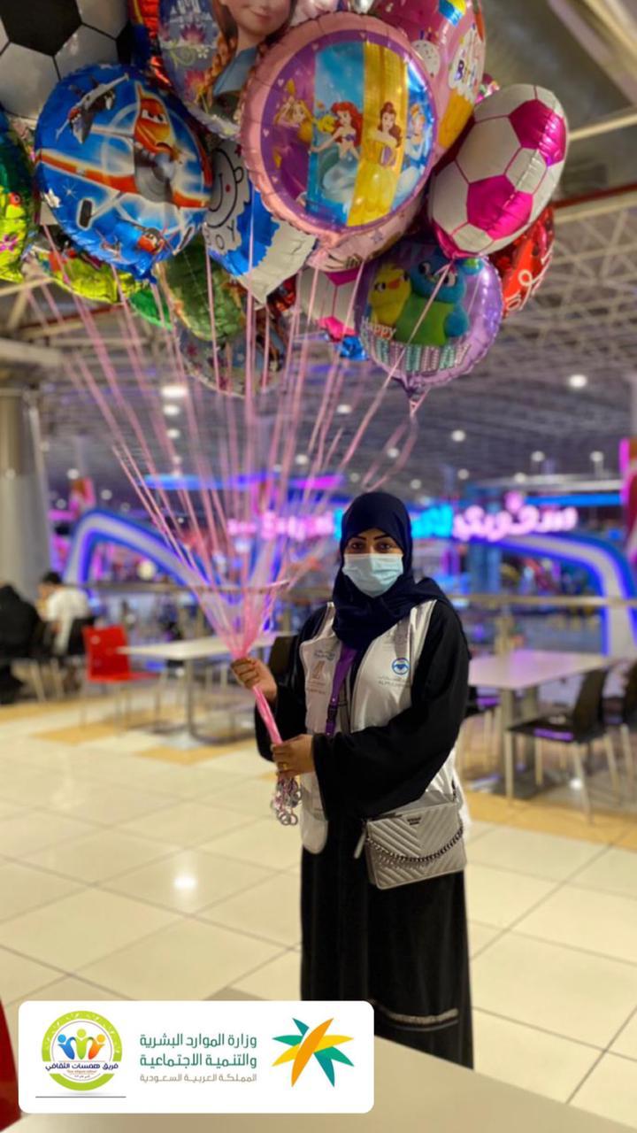 وقدمت الأستاذة زينب القطان البالونات إهداء خاص منها لكل طفل وطفلة بهدف رسم الإبتسامة على محياهم الجميل ‘ وتحدثت قائلة أنني أدعوا المجتمع للمشاركة بمثل هذه المبادرات الجميلة وهو فخر لكل المتطوعين الذين يبذلون وقتهم وجهدهم في سبيل تثقيف أفراد هذا الوطن الغالي ‘ وكذلك الأستاذة بتول الفرحان التي وزعت قطعة من الشوكولاته مع الكمامة إهداء للمتسوقين بهدف نشر الوعي أكثر بأهمية لبس الكمامة
