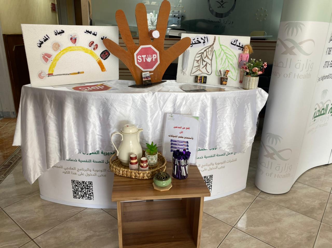 دشن مجمع إرادة والصحة النفسية لخدمات إرادة بجدة ممثلاً في إدارة العلاقات العامة والإعلام والتوعية الصحية وإدارة بالتعاون مع عيادة التدخين اليوم الإثنين 1442/10/12 العاشرة صباحاً فعالية اليوم العالمي للتدخين بهدف التأكيد على خطورة النيكوتين الضار بالجسم والعمل على تغيير بعض المفاهيم الخاطئة التي تساهم في عدم الإقلاع عن التدخين.