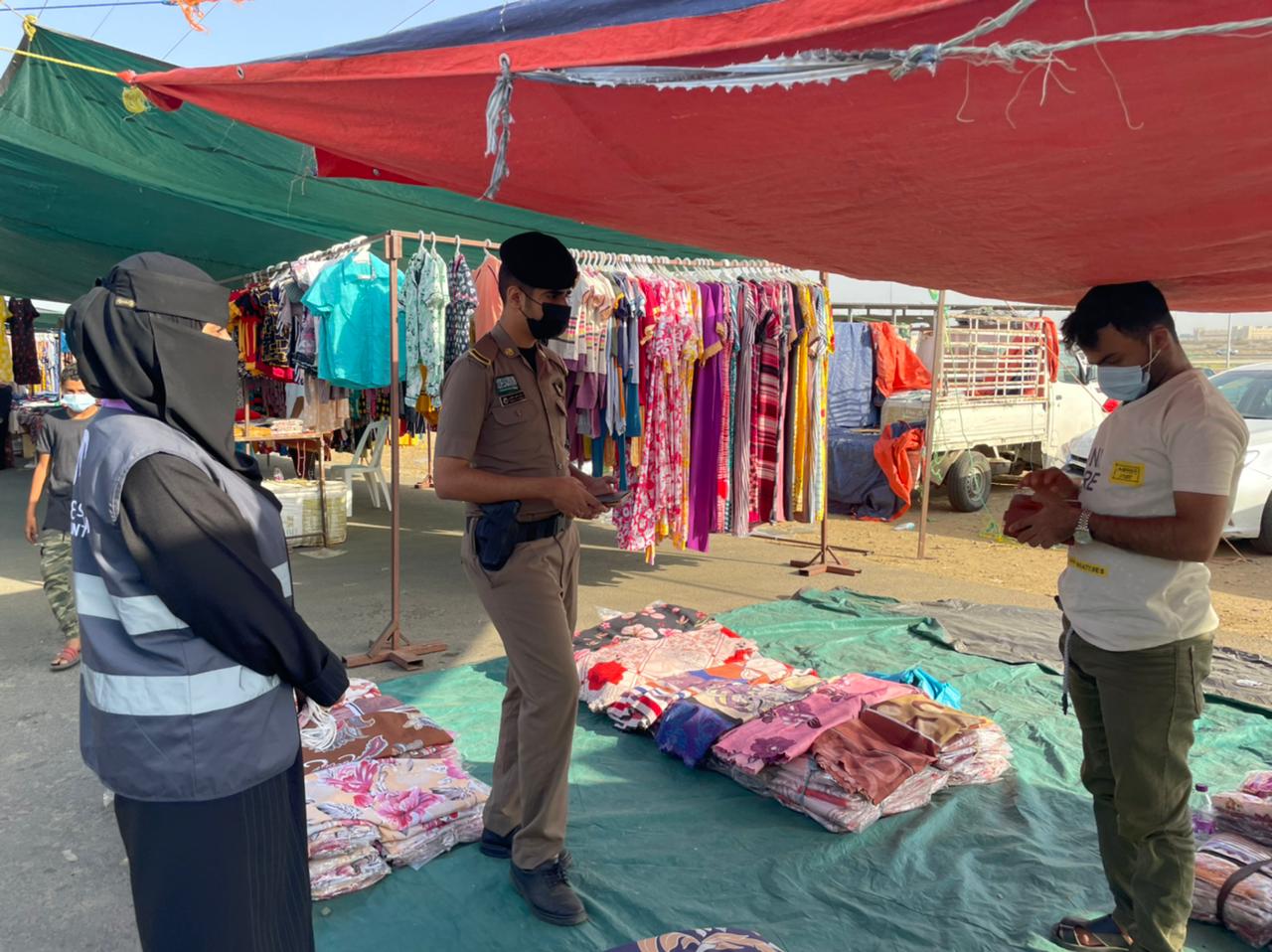 واصلت الجهات الحكومية بمحافظة صامطة جولاتها الميدانية على السوق الأسبوعي في المحافظة، وذلك بتوجيه من محافظ صامطة الأستاذ أحمد بن عبدالله زعلة؛ لمتابعة التقيد بالإجراءات والتدابير الوقائية والاحترازية للحد من انتشار فيروس كورونا، وتوعية المتسوقين بأهمية الالتزام بالإجراءات الاحترازية لمواجهة الجائحة، وحثهم على تطبيق التباعد الاجتماعي ولبس الكمامة، والحرص على التعقيم، إضافة إلى حثهم وتعريفهم بآلية التسجيل في تطبيق صحتي لأخذ لقاح كورونا المستجد كوفيد-19.