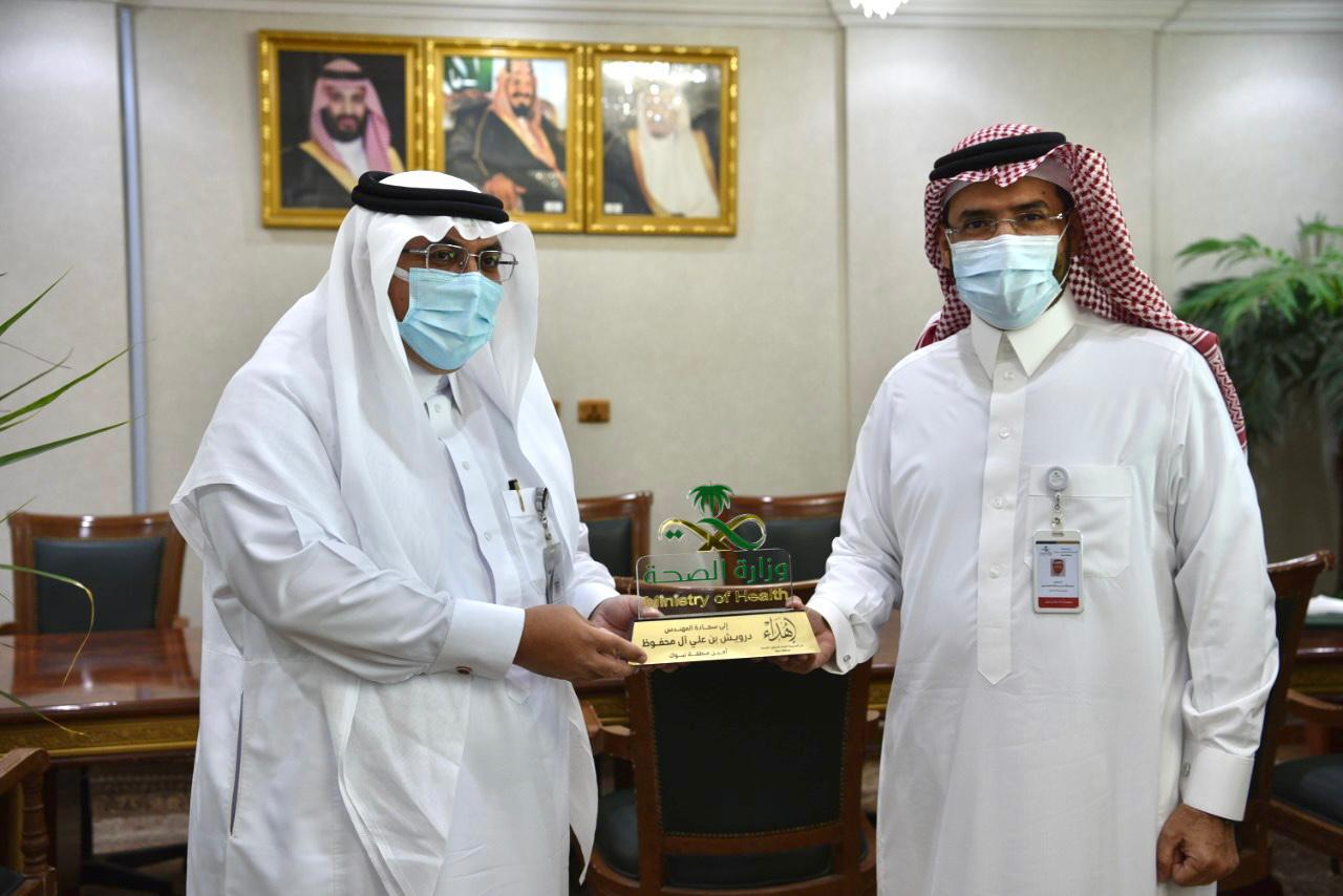 ألتقى مدير عام الشؤون الصحية بمنطقة تبوك الدكتور غرم الله بن عبدالله الغامدي اليوم بمكتبه ، أمين منطقة تبوك المهندس درويش بن علي ال محفوظ .