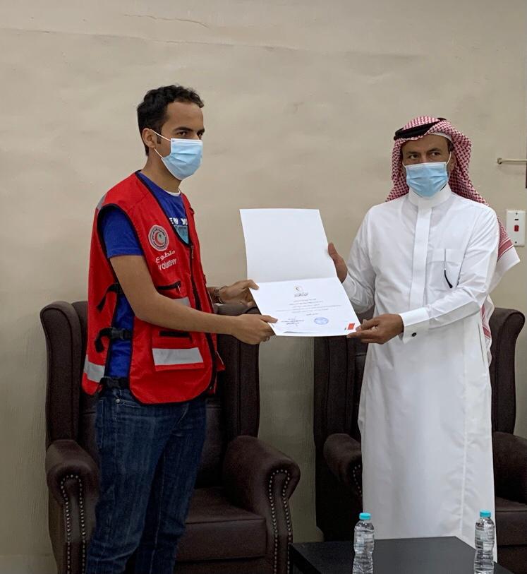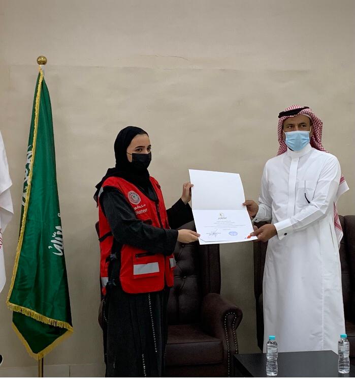 كرم مدير فرع هيئة الهلال الأحمر السعودي بمنطقة تبوك أحمد بن محمد العنزي المتطوعين ، في الحفل الخاص بإختتام الفعاليات والأنشطة الرمضانية ، التي قضى فيها المتطوعين 2691 ساعة تطوعية لخدمة أهداف وأنشطة الهيئة خلال إقامتها في شهر رمضان .