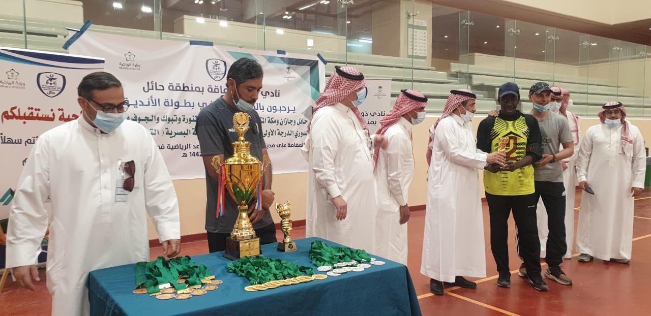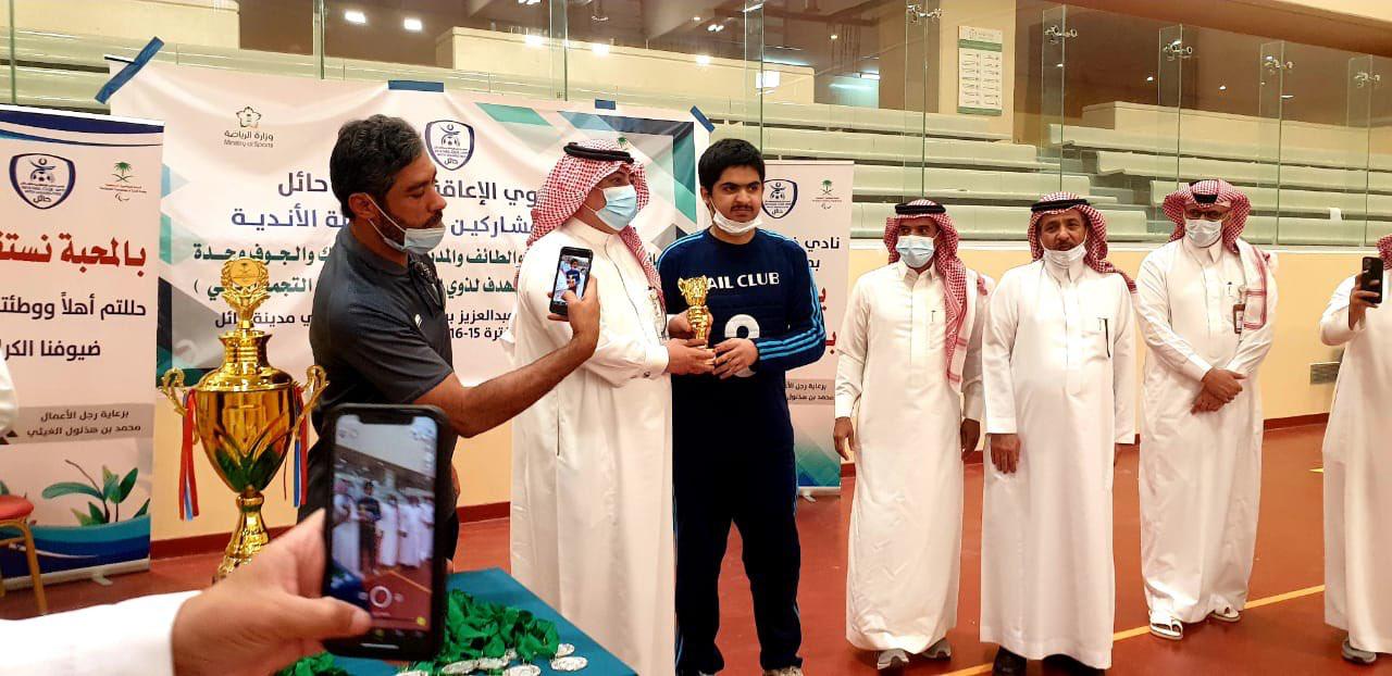 ونال لاعب نادي حائل مازن الشمري جائزة أفضل لاعب واعد في البطولة، حيث توج الفائزين مدير مكتب وزارة الرياضة بحائل أحمد بن محمد روزي ورئيس نادي حائل لذوي الإعاقة عبدالسلام العامر و نائب رئيس اتحاد رياضات المكفوفين علي الدرسوني .