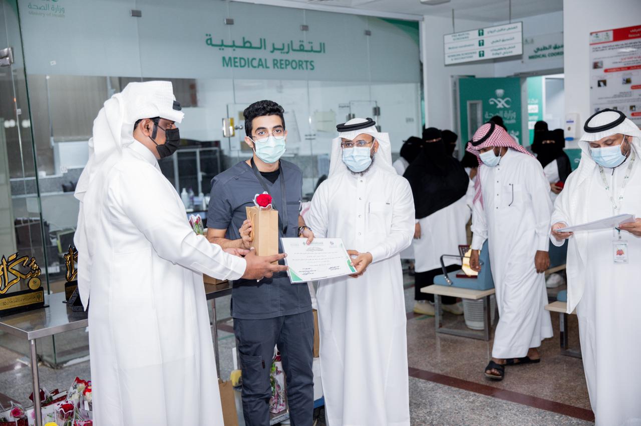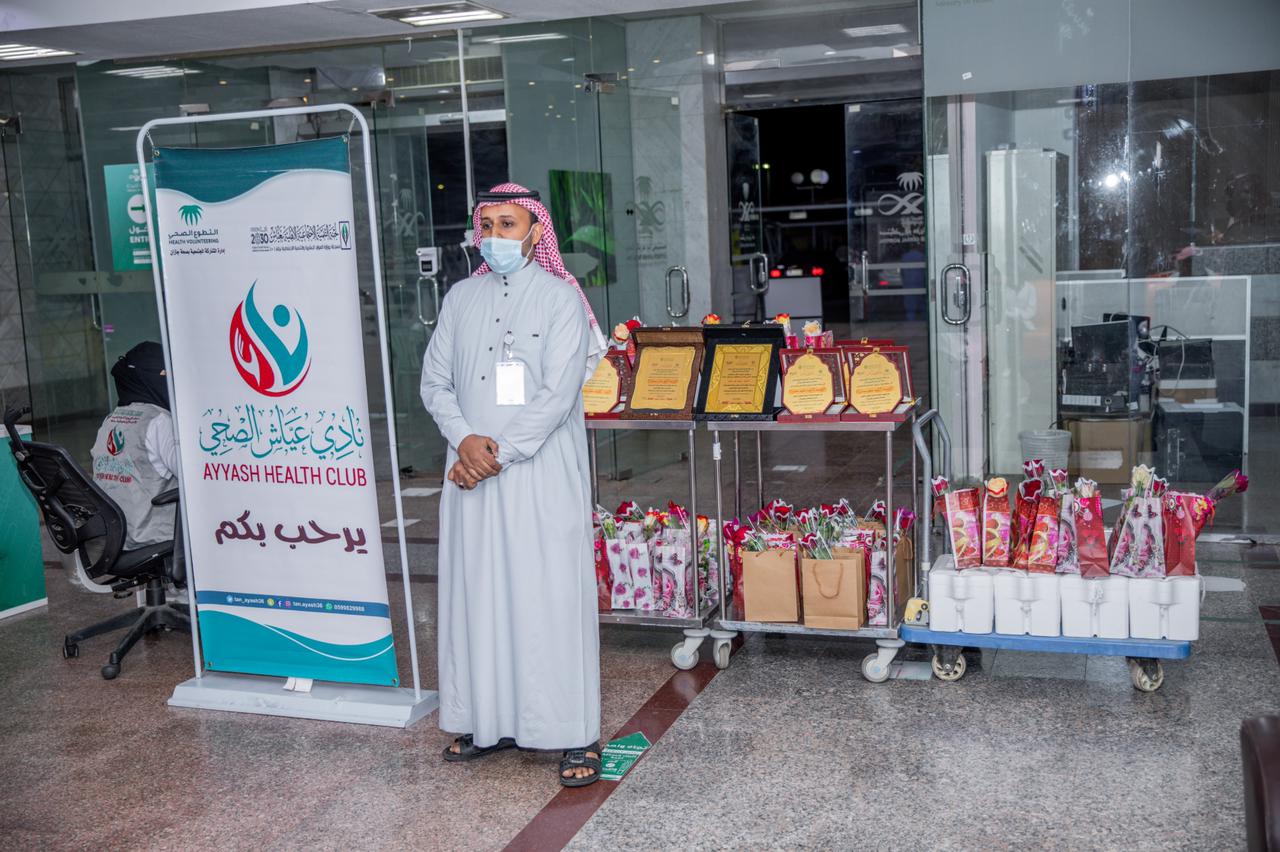 بحضور رئيس تنمية عياش الأستاذ علي جبران عياشي والمساعد الإداري والمالي لمستشفى أبو عريش العام الأستاذ محمد عقدي ، وبحضور مدير التطوع الصحي بالشؤون الصحية بمنطقة جازان الدكتورة أمل باجبير ، كرمت لجنة عياش متطوعي النادي الصحي بمركز لقاحات COVID-19 بمستشفى أبو عريش العام