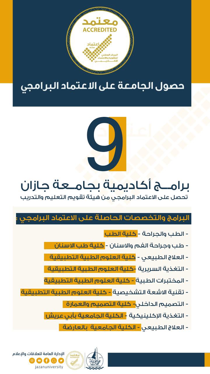 يشار إلى أن الاعتماد البرامج شمل 9 برامج وتخصصات في كليات الجامعة وهي: