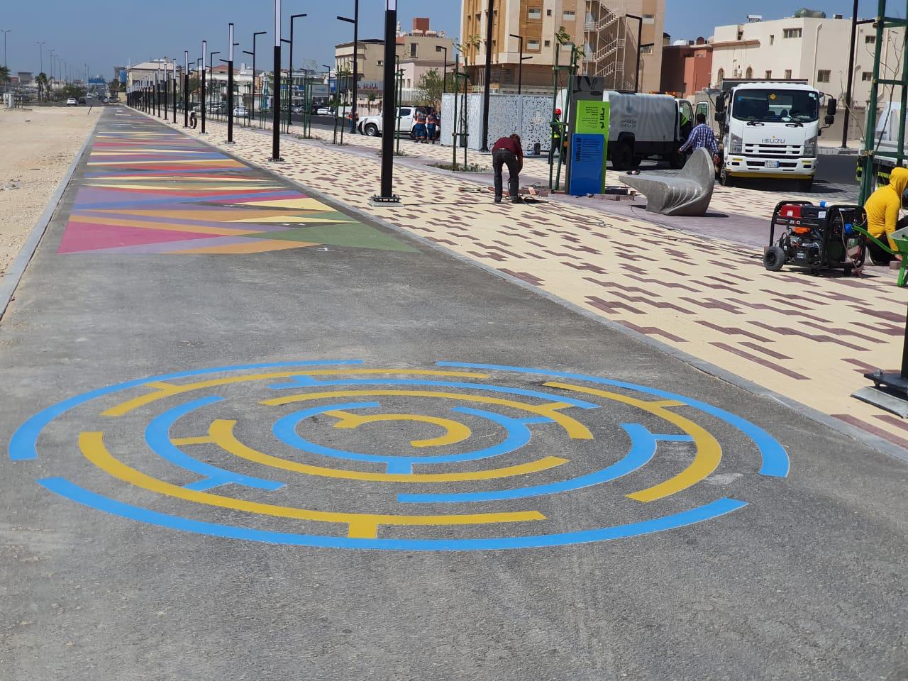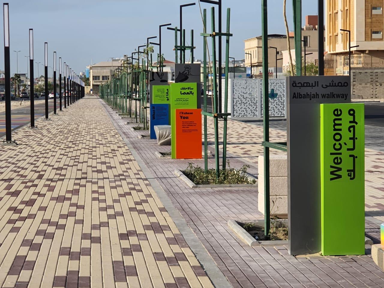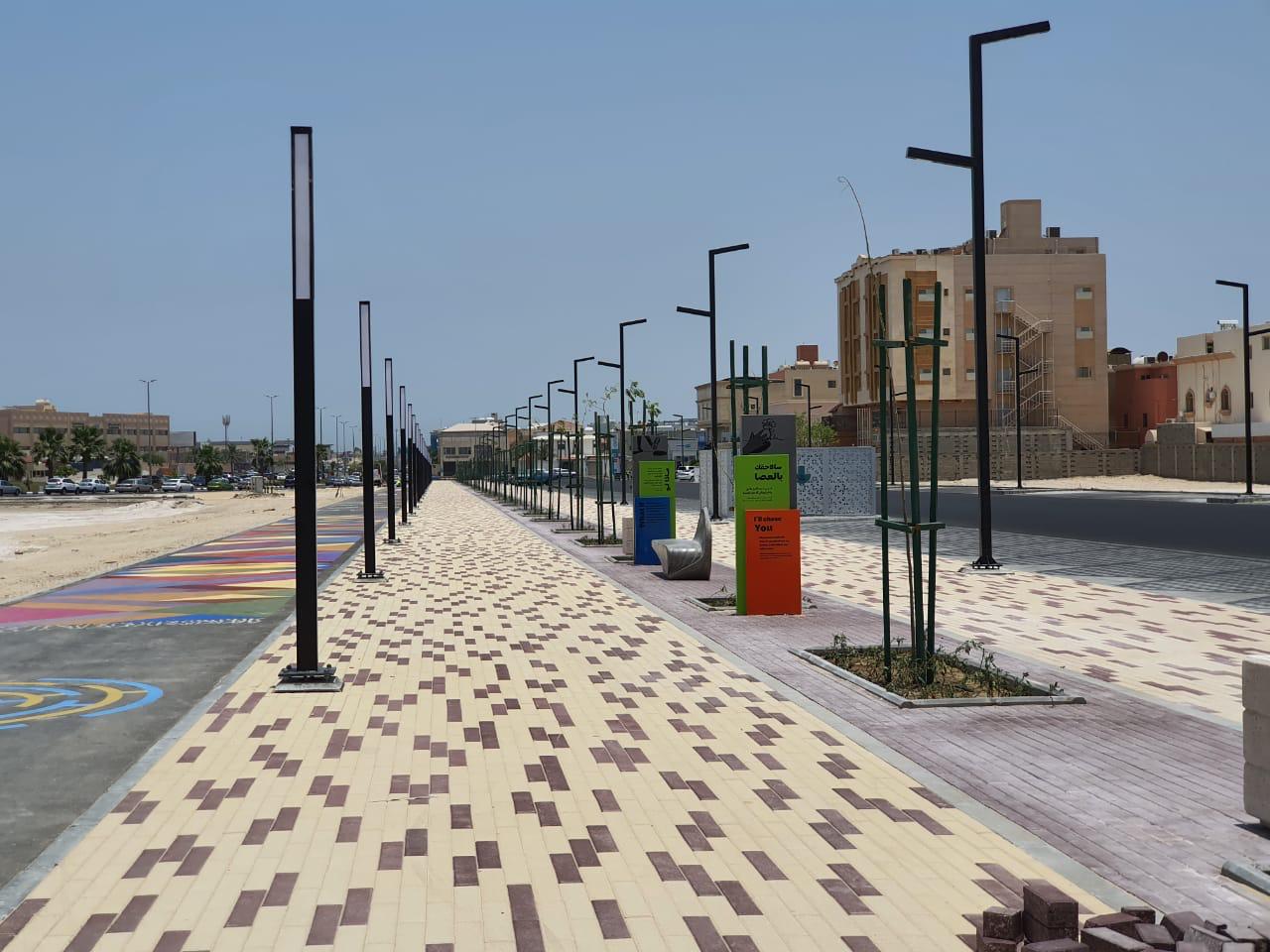 وأضاف المتحدث الرسمي بأن الممشى يتضمن مساراً تفاعلياً للأطفال، بمسارين من الانترلوك بعرض ٤ متر لكل مسار وبطول ٥٠٠ متر بتصميم عصري يتوسطهم منطقة بعرض ٢ متر بها أحواض زراعة لأشجار الظل والشجيرات المزهرة وكراسي للجلوس بتصميم وتصنيع عصري وأعمدة إنارة ديكورية بارتفاع ٥ متر لإضاءة الممشى، كما يحتوي على مسار تفاعلي على طريقة (Tactical Urbanism) بالأسفلت الملون برسومات وألعاب تعليمية وتفاعلية للأطفال بطريقة عصرية وجذابة، بالإضافة إلى لوحات توعويه إرشاديه للزوار،