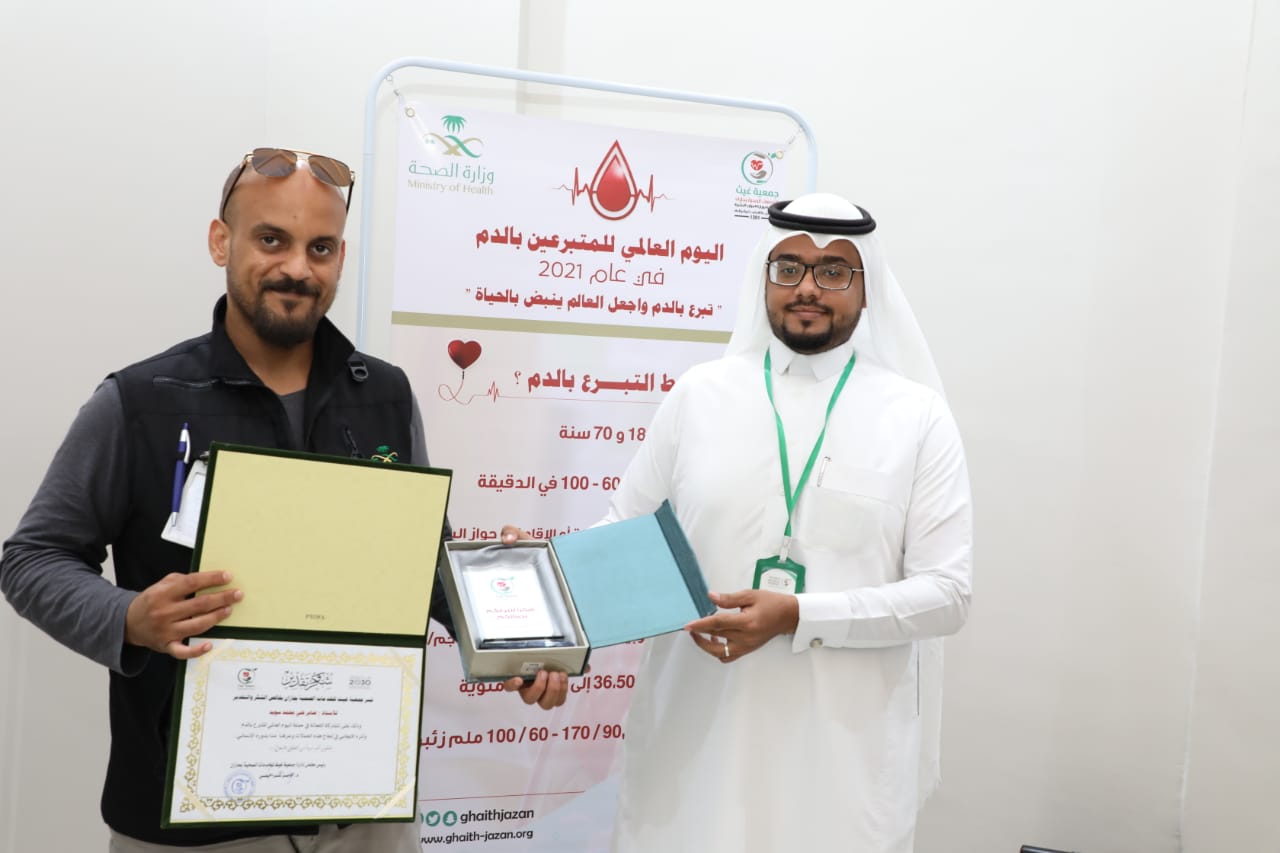 اطلقت متطوعات في جمعية غيث الصحية بجازان اليوم حملة للتوعيه بالتبرع بالدم و تكريم المتبرعين والمتبرعات، وذلك بمناسبه اليوم العالمي للمتبرعين بالدم الذي يوافق 14 يونيو.