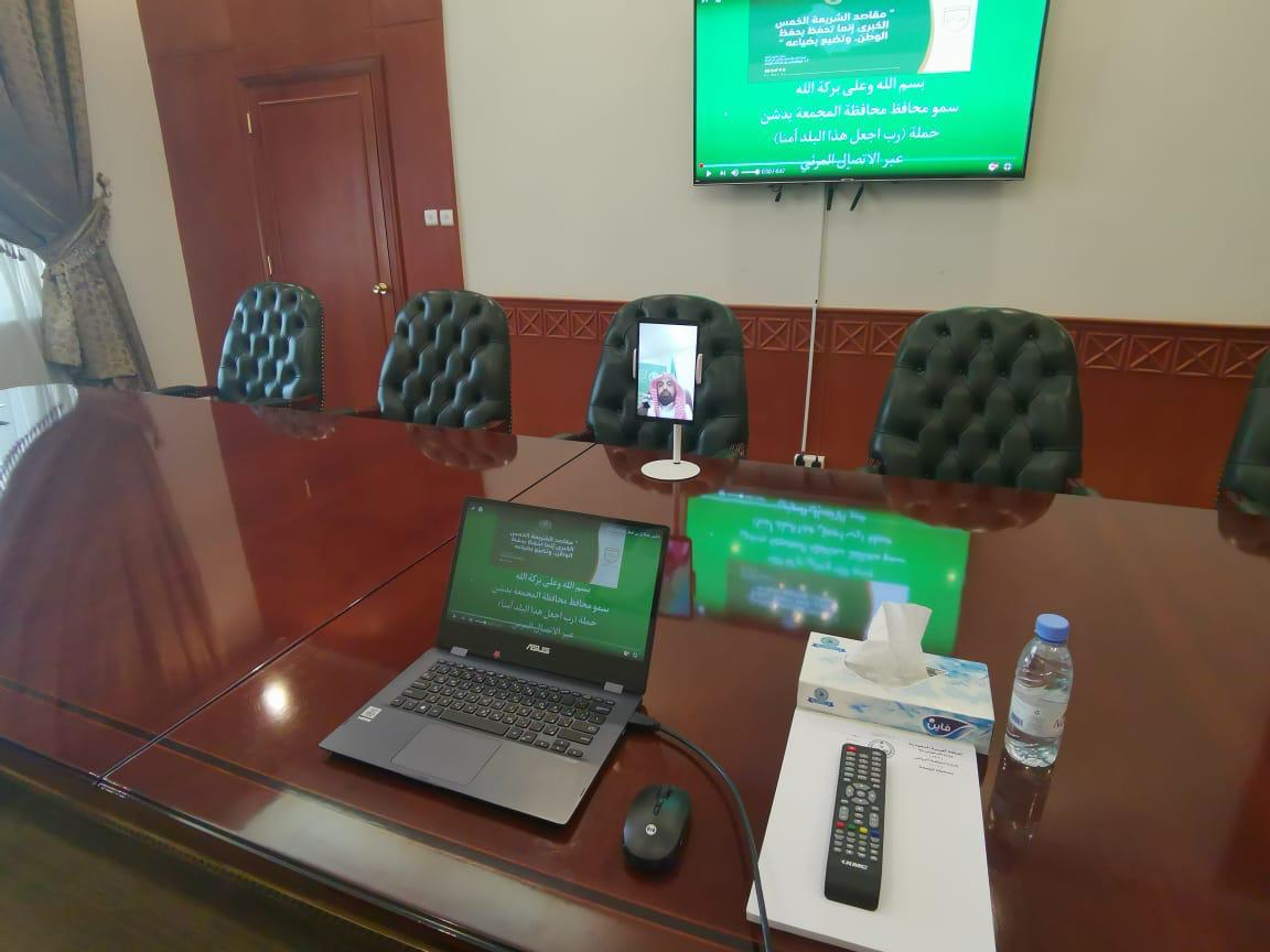 أطلق محافظ المجمعة سمو الأمير عبدالرحمن بن عبدالله بن فيصل آل سعود فعاليات حملة (رب اجعل هذا البلد آمناً) بالمحافظة وذلك عبر (الاتصال المرئي) مع رئيس هيئة الأمر بالمعروف والنهي عن المنكر بمحافظة المجمعة الشيخ شايع بن صالح البغيليل الذي قدم نبذة عن الحملة التوعوية وأهدافها.