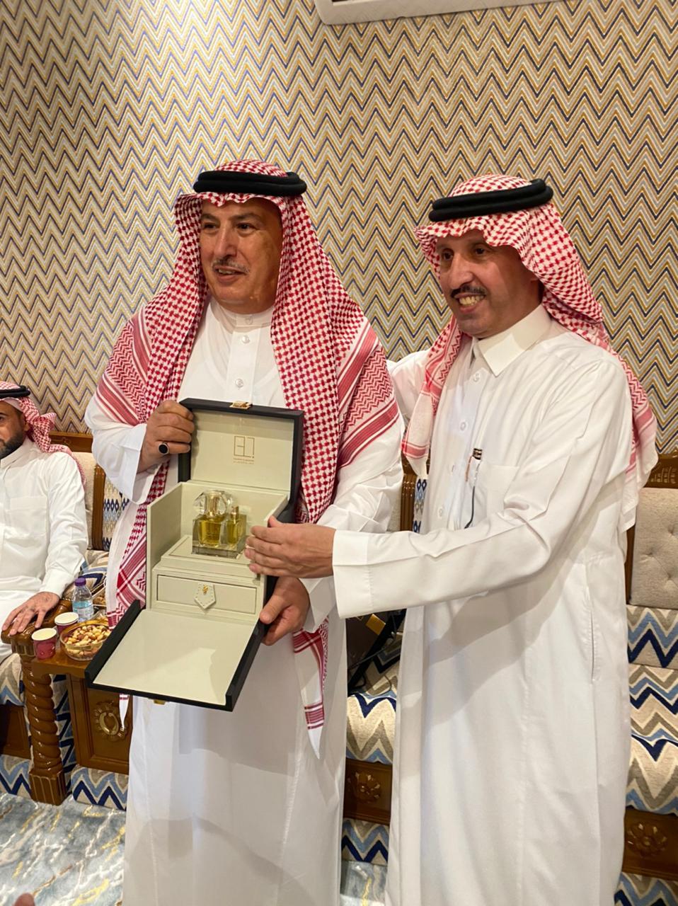 وفي الختام قدّم سعيد الأزهري والدكتور ناصر الفصيلي وزملاء المحتفى به، الهدايا التذكارية بهذه المناسبة، وفي المقابل قدم فهد العسيري هدية للمضيف سعيد الأزهري تقديراً ووفاء له، وتناول الجميع طعام العشاء.