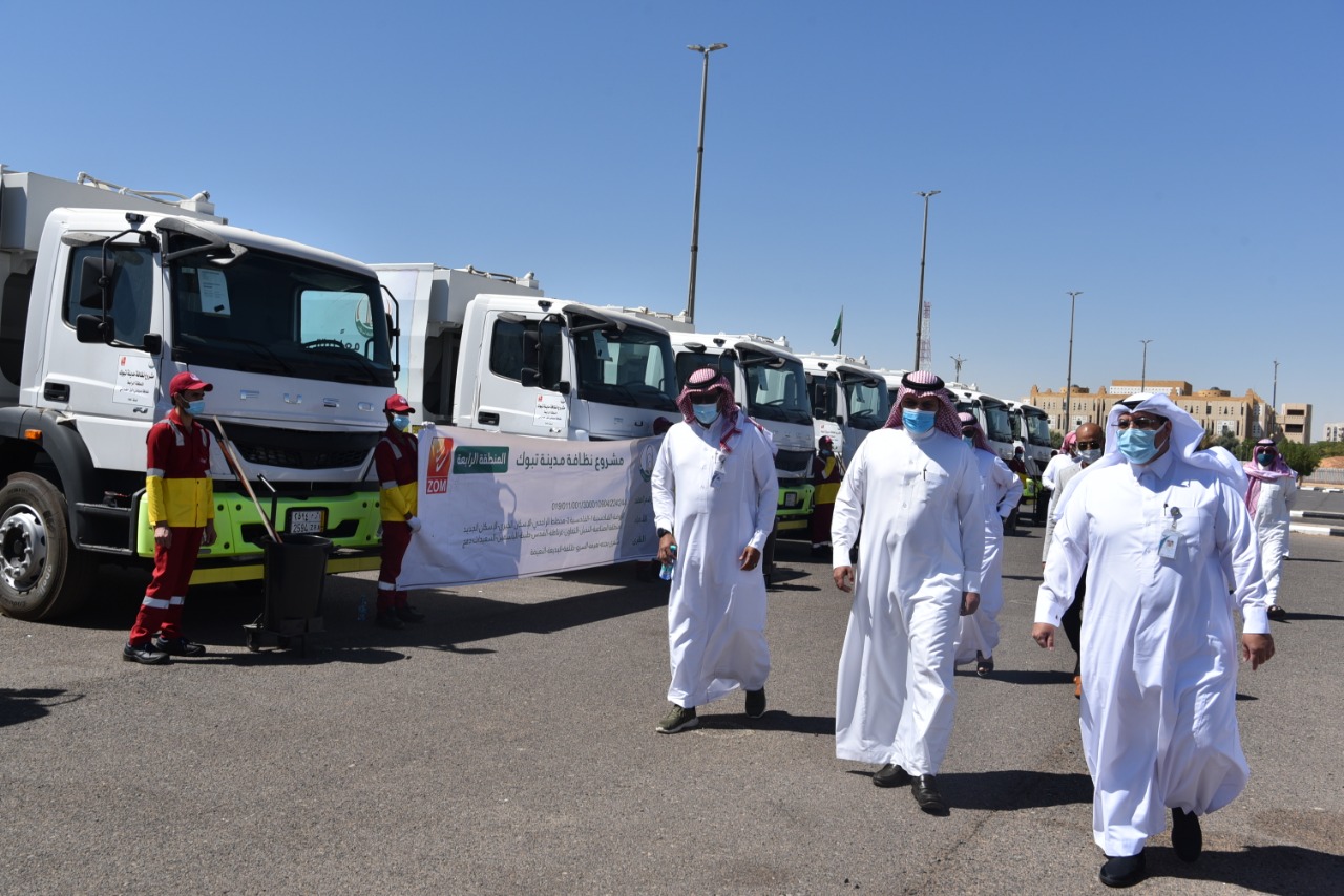 دشن أمين منطقة تبوك المهندس درويش بن علي ال محفوظ صباح اليوم مشروعي النظافة الجديد والخاص بجمع ونقل النفايات ، والتي بلغ إجمالي تكلفتها تسعة وثمانون مليون وتسعمائه واربعون ألف ريال .