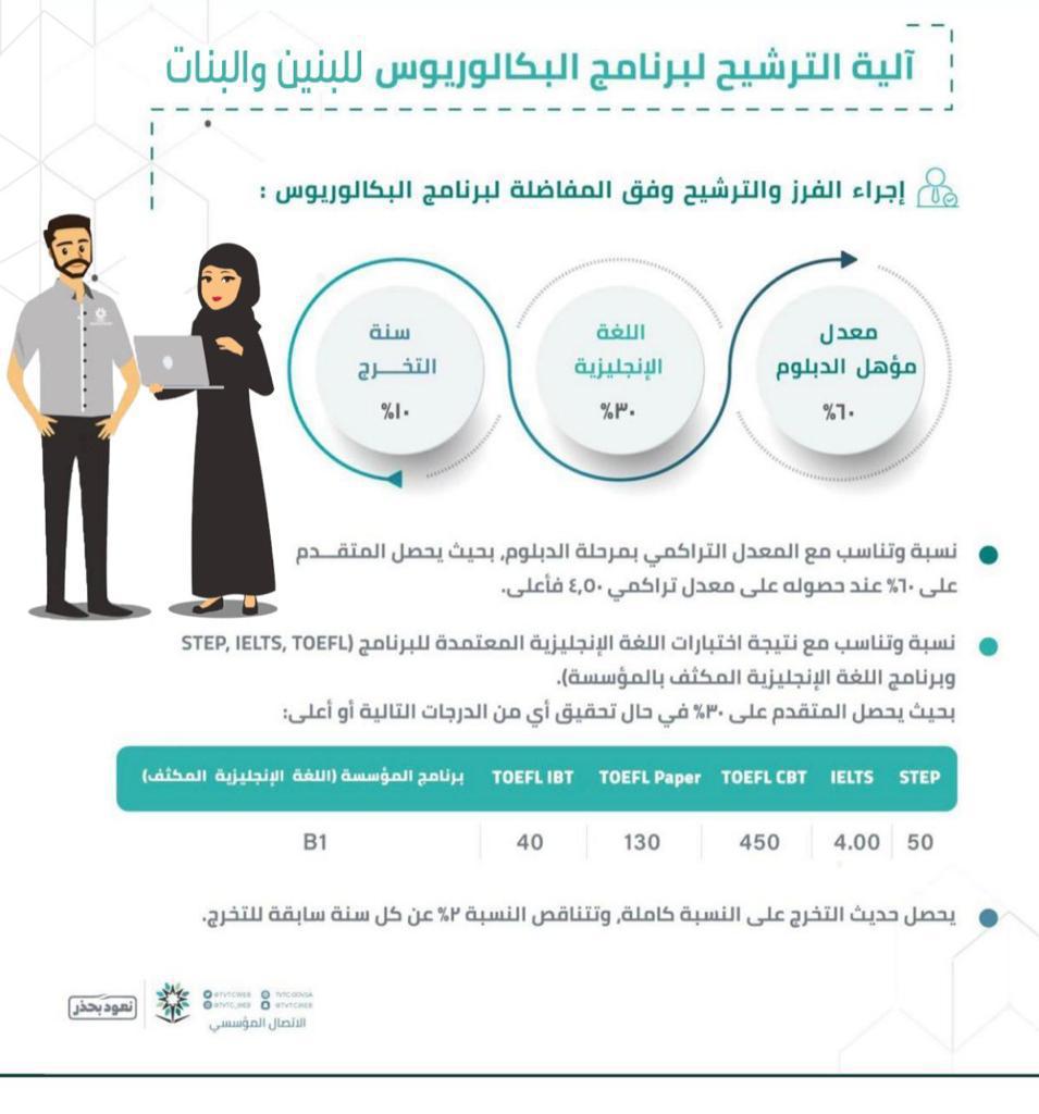 أعلنت الكلية التقنية ببيشة فتح باب القبول والتسجيل لبرامج البكالوريوس المسائي للفصل التدريبي الأول للعام القادم 1443 هـ وذلك ضمن خطة القبول بالمؤسسة العامة للتدريب التقني والمهني .