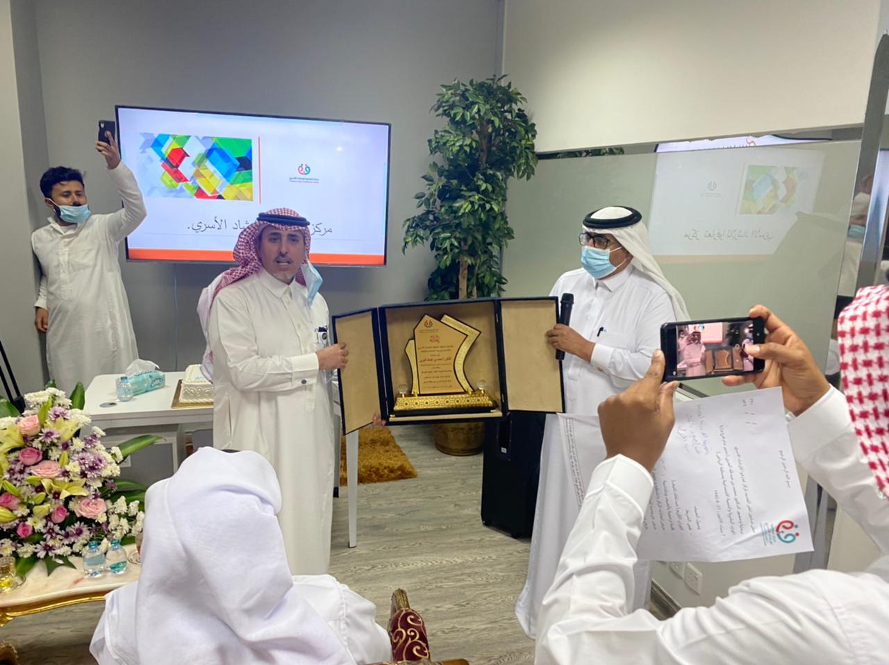 وفي نهاية الحفل قدم الدكتور سعود المصيبيح درع رواد السعادة والعطاء من مركز تعارفوا للإرشاد الأسري للدكتور محمد الحربي تقديرا لجهوده في مجال التنمية ودعم الارشاد الاسري بمنطقة الرياض ثم تم تكريم المديرة التنفيدية السابقة للمركز الأستاذة فاطمة أبوطالب عقب ذلك تمت إجراءات احتفالية التدشين بالكيكة والبوفيه المعد لهذه المناسبة.