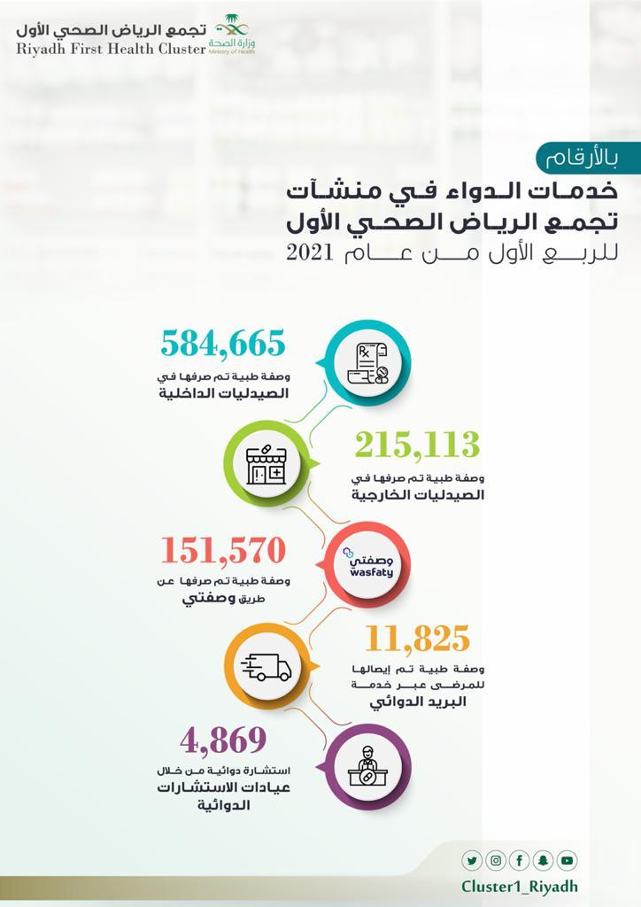 أكثر من 900 ألف خدمة دوائية في تجمع الرياض الصحي الأول خلال الربع الأول من 2021