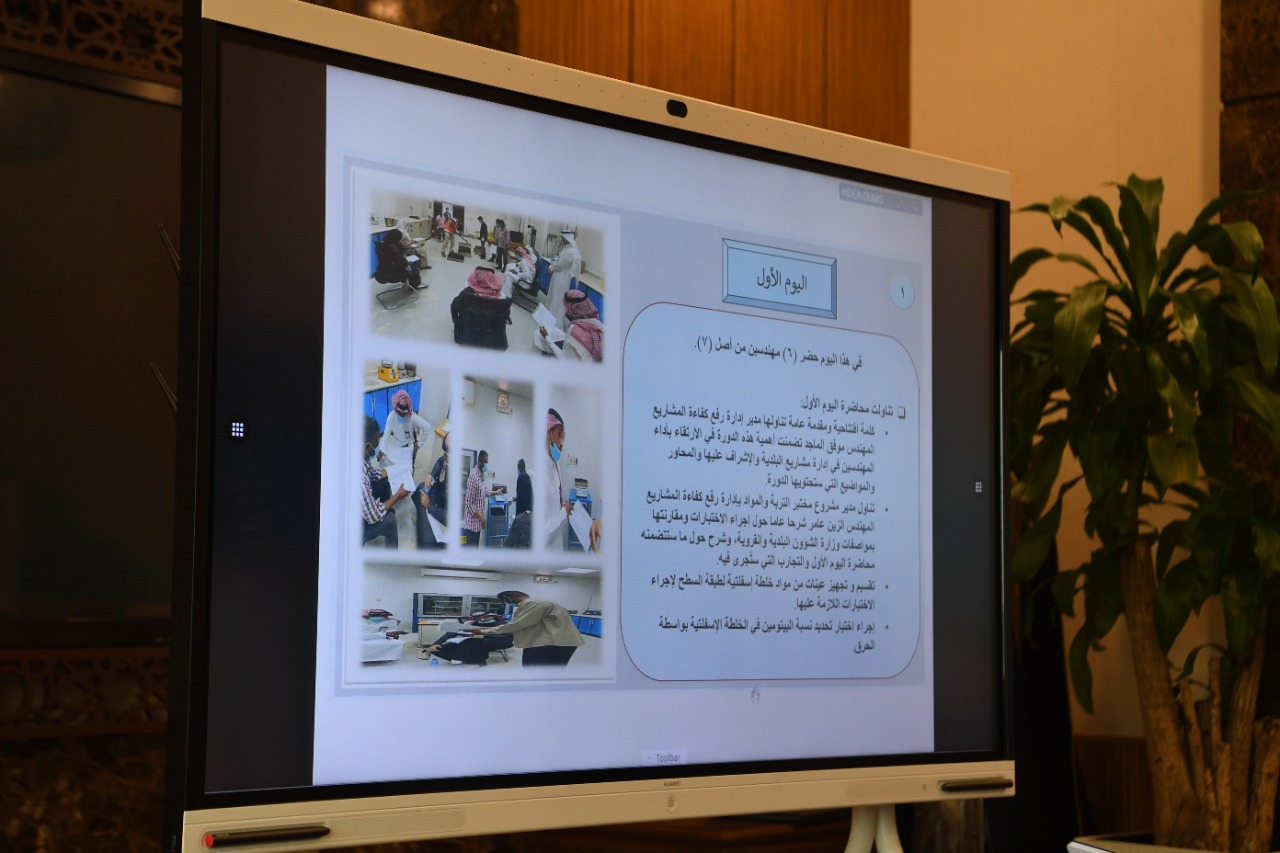 كما ناقش معاليه منجزات إدارة رفع كفاءة المشاريع ببلدية محافظة القطيف، والتي من ضمنها إقامة دورة تدريبية لتدريب المهندسين ببلدية محافظة القطيف لمدة أسبوعين بعنوان ” دورة هندسة المواد وإدارة المشاريع ” مُستهدفة المهندسون الموظفون حديثاً بالبلدية، والمهندسون السعوديون بالمكاتب الاستشارية المتعاقدة مع البلدية، مشيدا معاليه على اقامة هذه الدورات، ومطالبا في نفس الوقت كافة البلديات والادارات المعنية بتكثيف هذه الدورات ليستفيد منها الجميع في هذه التخصصات.