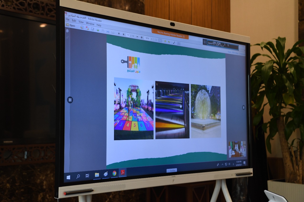 كما ناقش معاليه مبادرة فنون المجتمع وهي مسابقة مجتمعية وطنية لتصميم حديقة الميادين كحديقة نموذجية مجتمعية، تهدف إلى تحقيق مستهدفات رؤية المملكة 2030، في نشر ثقافة العمل التطوعي لا سيما التخصصي والمهاري، وتستهدف المصممين والرسامين والخطاطين والموهوبين، وطريقة المشاركة بالمسابقة عبر الدخول إلى منصة المشاركة المجتمعية عبر موقع أمانة المنطقة الشرقية، والتي أعدت لهذا الشأن.