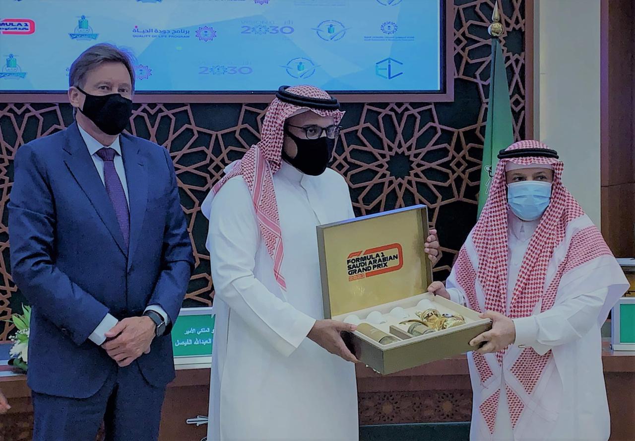 وقال رئيس مجلس إدارة الاتحاد السعودي للسيارات والدراجات النارية، صاحب السمو الملكي الأمير خالد بن سلطان العبدالله الفيصل: “من خلال قيادة حكيمة ورشيدة من مولاي، خادم الحرمين الشريفين الملك سلمان بن عبدالعزيز آل سعود -حفظ الله-، ثم من سمو سيدي ولي العهد الأمير محمد بن سلمان، وتحت إدارة صاحب السمو الملكي، وزير الرياضة وبجهود كل العاملين في الاتحاد السعودي للسيارات والدرجات النارية، أقف أمامكم وبكل فخر لنتحدث عن أقوى وأرقى البطولات العالمية في رياضة المُحرِكات، وعلى رأسها بطولة العالم للفورمولا 1، والتي ستزور المملكة العربية السعودية للمرة الأولى شهر ديسمبر القادم، وستصطحب معها نخبة السائقين والمهندسين والتقنيّين والمصنّعين والفرق العالمية”.
