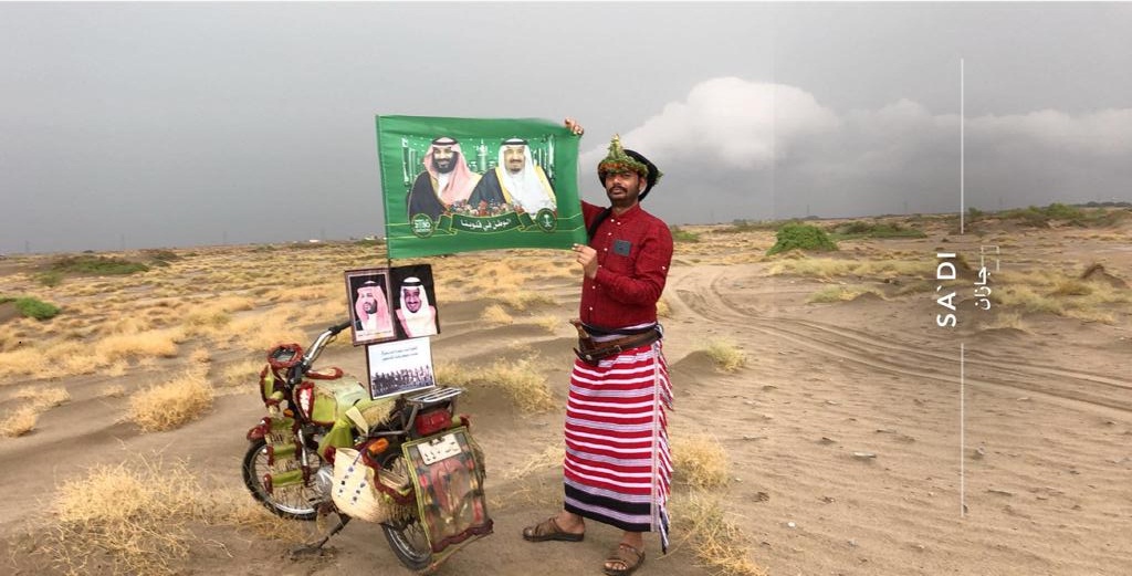 وأضاف “دحباش ” أن هذه الدراجة تحولت إلى وسيلة النقل الوحيدة له، وهي تختصر عليه الوقت والإبتعاد عن الزحام يزينها بصور قيادتنا الرشيدة، خادم الحرمين الشريفين الملك سلمان بن عبدالعزيز وسمو ولي العهد صاحب السمو الملكي الأمير محمد بن سلمان – حفظهما الله – ، بالإضافة إلى صور علم المملكة العربية السعودية.