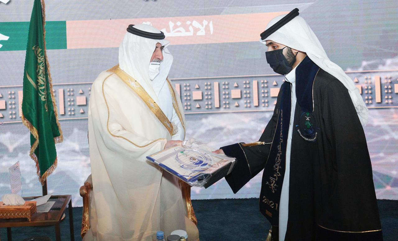 بعدها كرم سموه الفائزين والفائزات في مجال التفوق العلمي البالغ عددهم 36 فائزا وفائزة، كما كرم الفائز في مجال التميز في الإبداع والإبتكار فني أول عبدالرحمن الحربي من مستشفى الملك سلمان للقوات المسلحة بالشمالية الغربية نظير تميزه في تطوير أسلوب الدفق النبضي للدم في أجهزة القلوب الصناعية أثناء جراحة القلب المفتوح، كما كرم سموه الشؤون الصحية بمنطقة تبوك في مجال مسار الخدمة المجتمعية، نظير ماقدموا من جهود في التصدي لجائحة كورونا، وحماية المجتمع من خطرها.