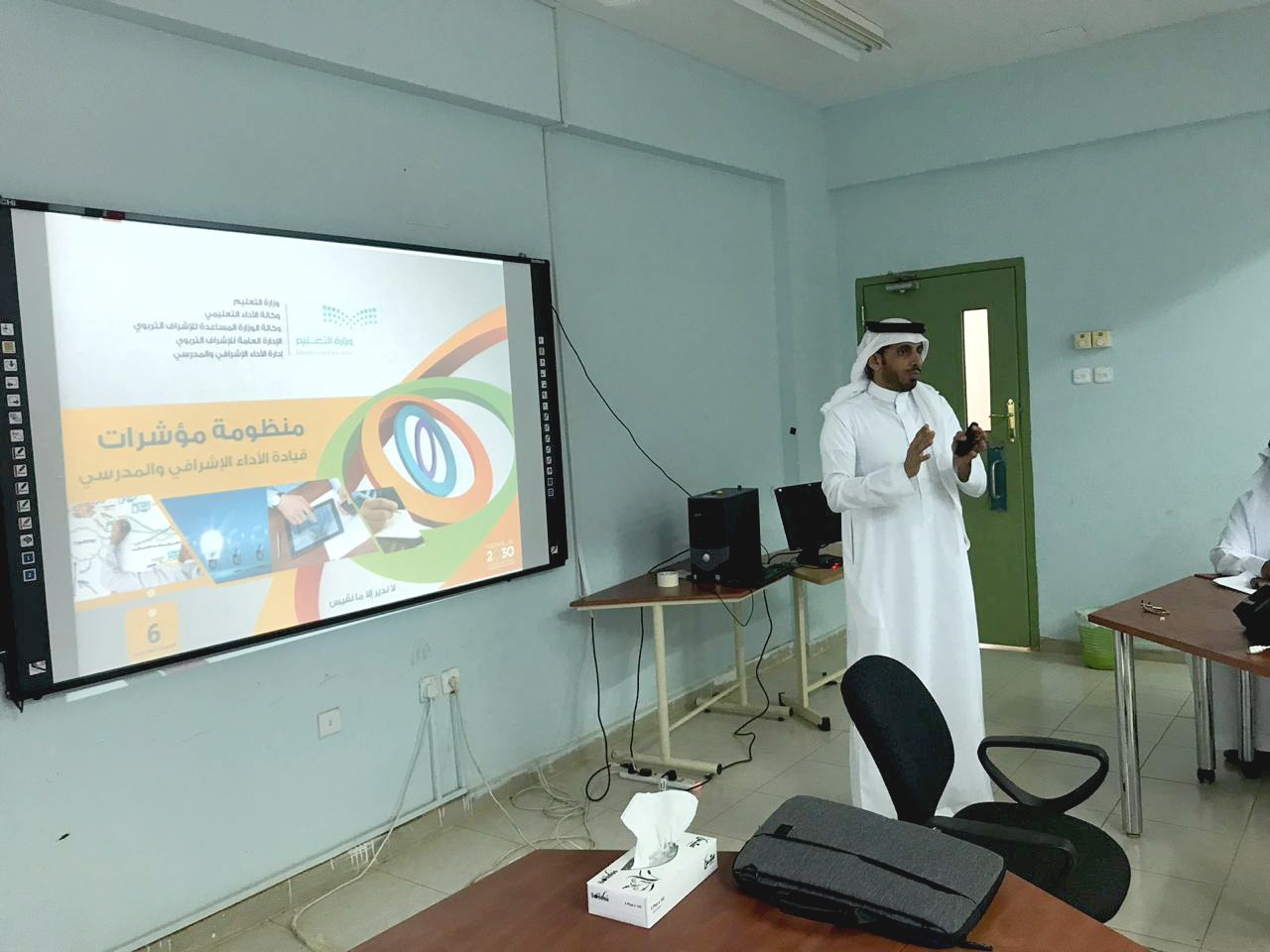 يذكر أن البرنامج من تنفيذ أخصائي التقويم بإدارة الإشراف التربوي الأستاذ عامر فلوس واشتمل على عدد من المحاور منها الأسس العامة لبناء المؤشرات وأهمية قيادة الأداء الاشرافي وأهداف ووظائف وضوابط مؤشرات أداء إدارة الإشراف ومكاتب التعليم وفئات الأداء الاشرافي وإدارة منظومة مؤشرات الأداء الاشرافي ومؤشرات الأداء الاشرافي الأساسية.