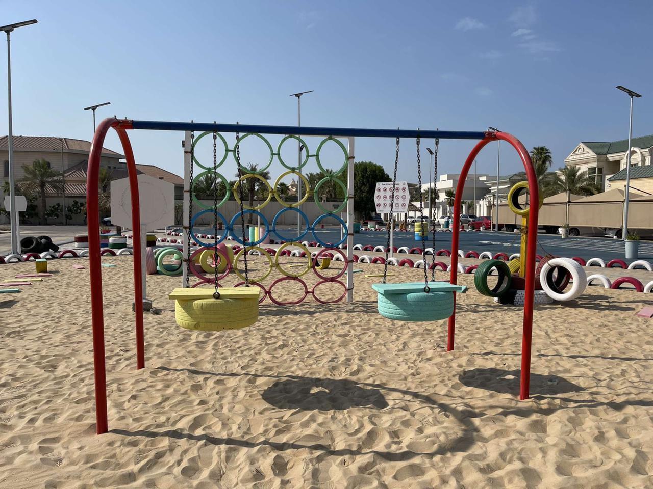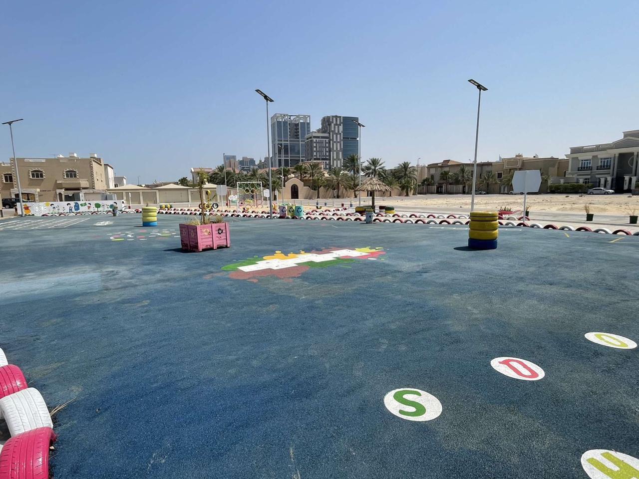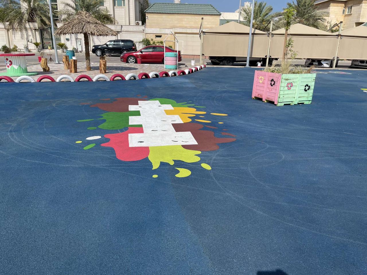 وأضاف المهندس سلطان الزايدي أن حديقة التدوير التي تم انشاؤها تأتي على مساحة تزيد عن 1800 متر مربع وتحتوي على ألعاب معاد تدويرها من اطارات السيارات وبعض الأجزاء الخشبية ومشايات من مخلفات الرخام والسيراميك وبعض الأحجار الموزعة لتشكل حديقة تكتمل فيها كل العناصر التي شكلت لوحة فنية بجمال محتوياتها وطريقة تصميمها، كما تحتوي على جلسات مظللة من بقايا سعف النخيل وطاولات خشبية، وحاويات تدوير ” بلاستيك – زجاج – ورق ” ، وأعمدة إنارة بالطاقة الشمسية، وزراعة أشجار بأحواض علب الدهانات والحاويات البلاستيكية وعربات اليد، وطاولة ألعاب تنس مصنوعة من بقايا حاوية، فيما تم استحداث أرضية من المطاط بمساحة 600م2 تحتوي على رسومات أرضية بأشكال تفاعلية .
