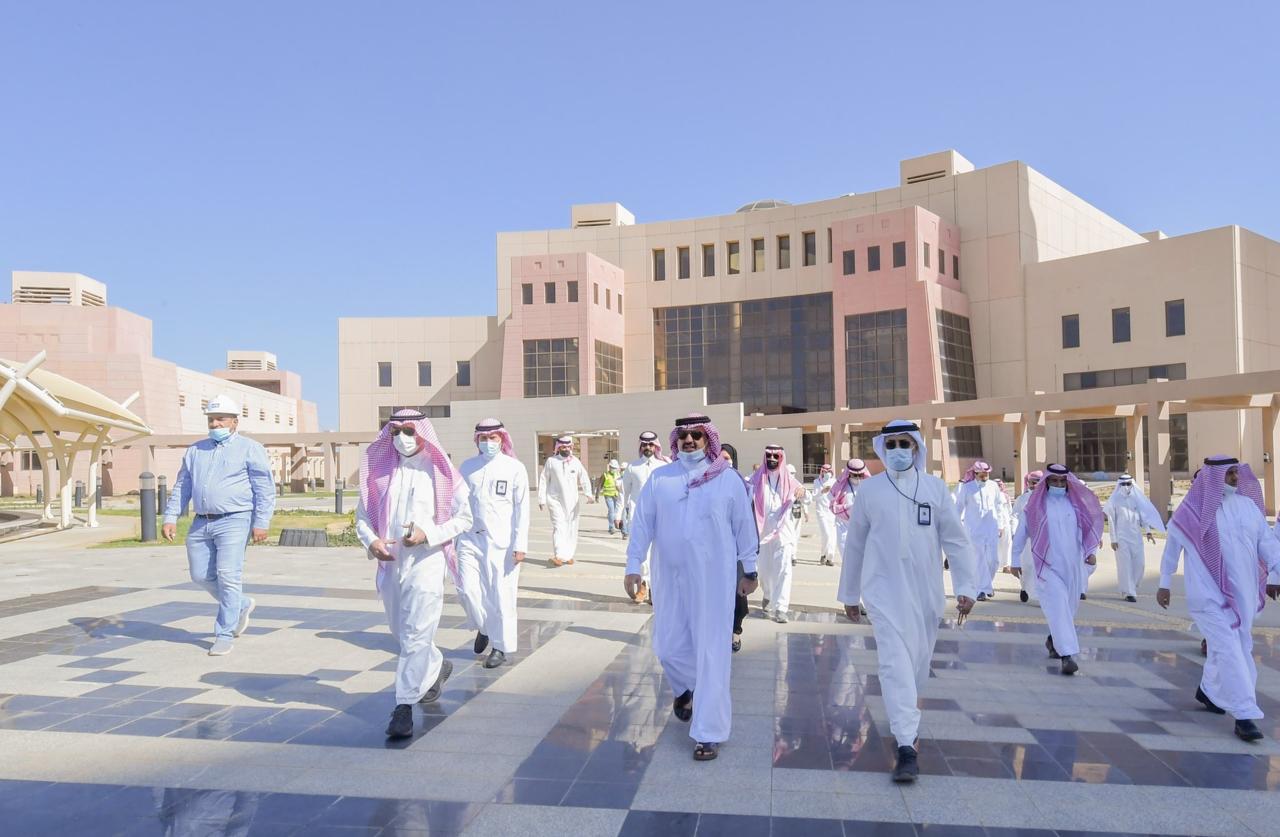 واطلع سموه خلال جولته في المدينة الجامعية الجديدة على المشروعات المنجزة بشكل كامل ونسب الإنجاز في المشروعات الأخرى. ورأس سموه الاجتماع الرابع لمتابعة أعمال المشروعات، بحضور فريق الجامعة ومسؤولي المكاتب الاستشارية والشركات المنفذة، وفريق التدخل الخدماتي والشركاء الإستراتيجيين، وبمشاركة عدد من أعضاء مجلس المنطقة والمجتمع المحلي.