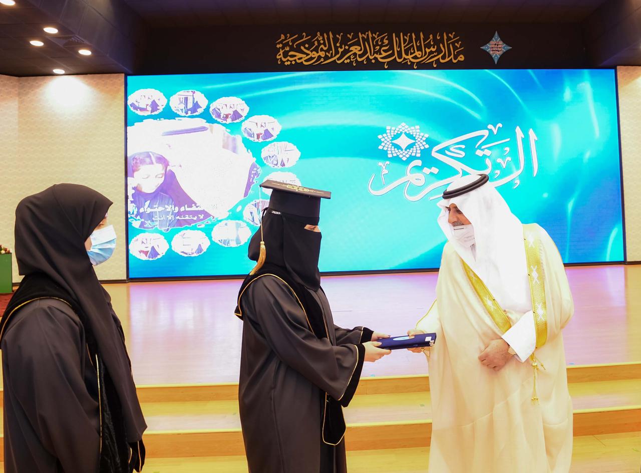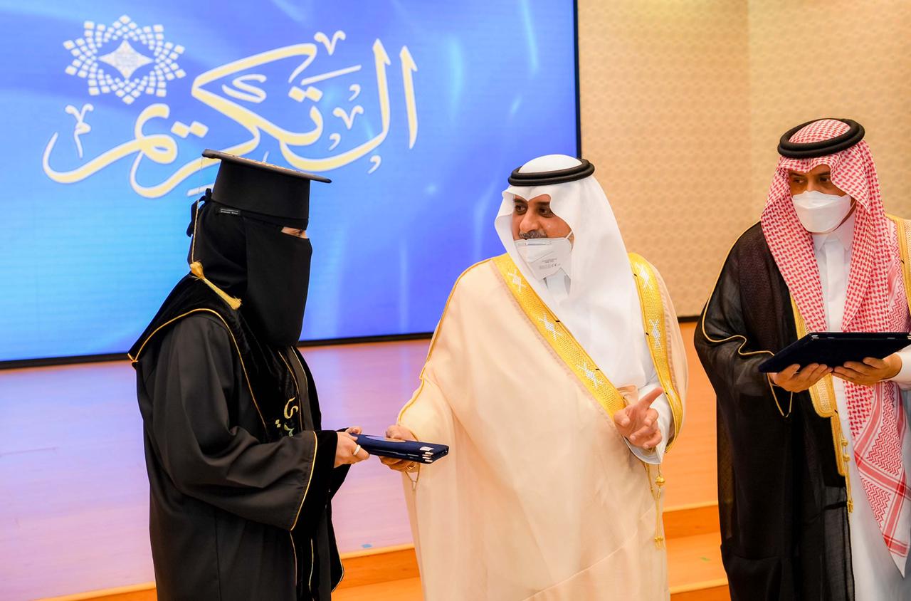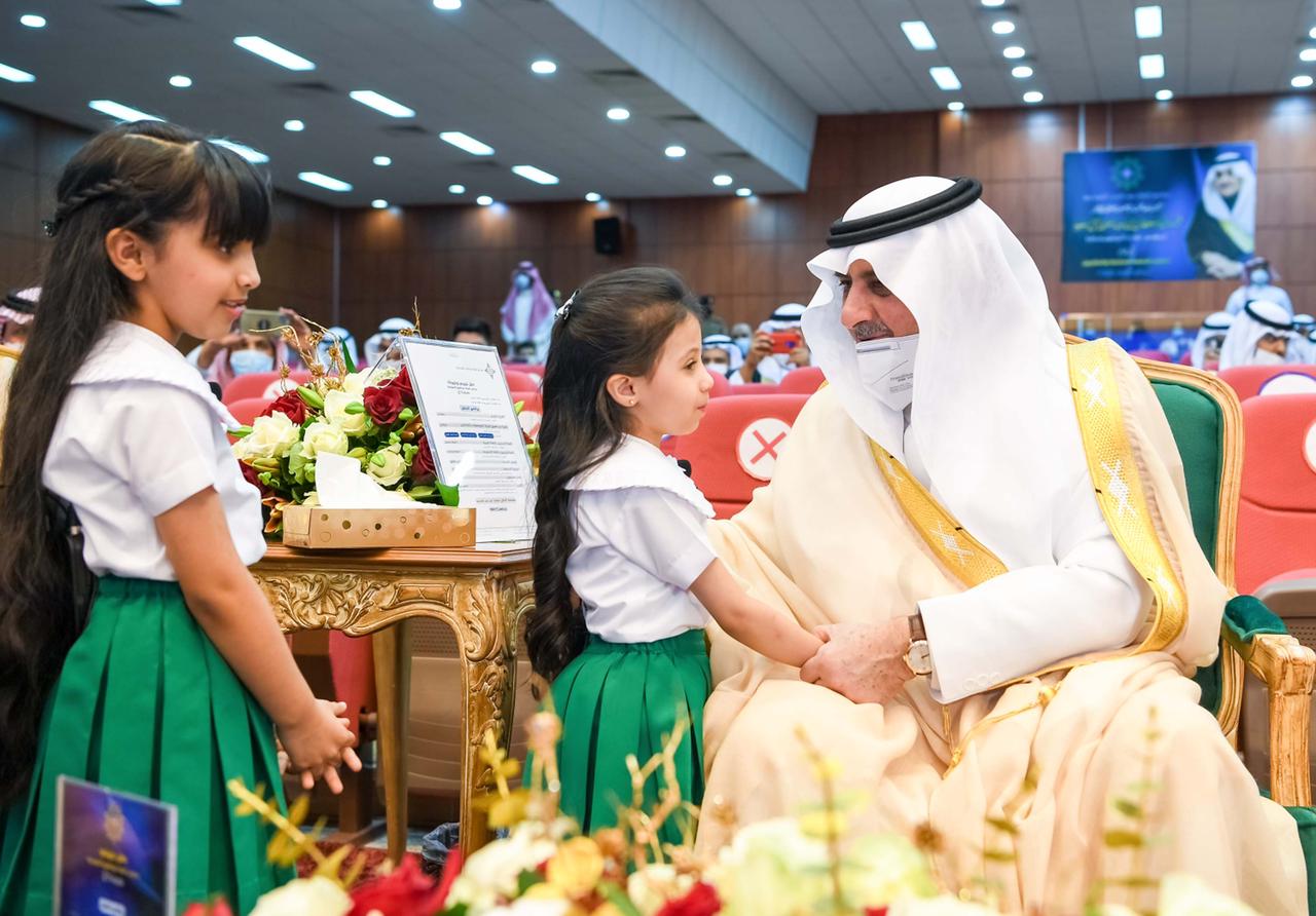 ثم شاهد سموه والحضور عرضاً مرئياً استعرض من خلاله إنجازات المدارس وخصوصاً خلال فترة جائحة كورونا, كما شاهد سموه عرض مرئي لمسيرة الخريجين , بعدها كرّم سمو أمير المنطقة الطلاب والطالبات المتفوقين بالمدارس.
