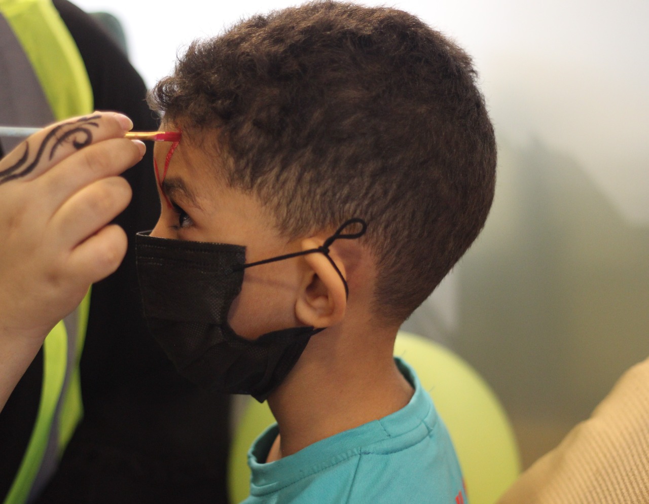 والرسم على الوجه الذي جذب الأطفال وكانوا بسعادة غامرة وركن الضيافة وتوزيع البالونات’