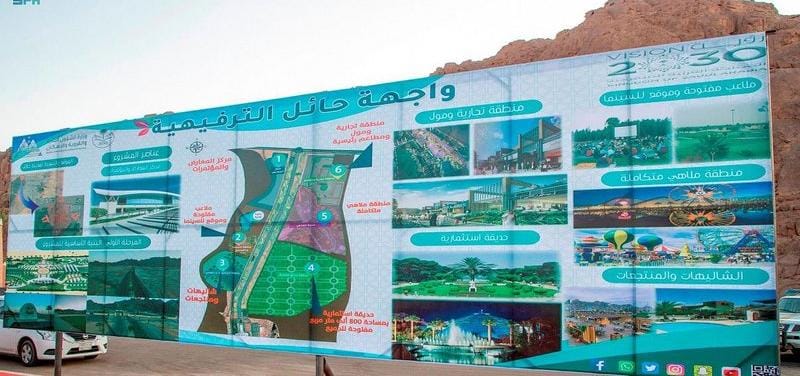 يشار إلى أن “واجهة حائل الترفيهية تحتوي على ستة مناطق؛ الأولى مركز المعارض والمؤتمرات، والمنطقة الثانية ملاعب مفتوحة وموقع للسينما، والمنطقة الثالثة شاليهات ومقاهي، والمنطقة الرابعة حديقة استثمارية بمساحة 800 ألف متر مربع مفتوحة للجميع، والمنطقة الخامسة منطقة ملاهي متكاملة، والمنطقة السادسة منطقة تجارية ومول ومطاعم رئيسة ويتخلل هذه المناطق 6 كافيهات عالمية ومحلية .